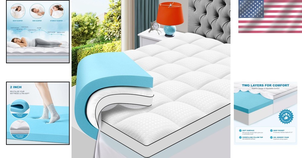 2 Inch Cooling Gel & Quilted Pillow Top Mattress Pad - 4 Inch Queen Size Comfort ‹ › ‹ › ‹ › ‹ › ‹ › ‹ › ‹ › ‹ › ‹ › 2 Inch Cooling Gel & Quilted Pillow Top Mattress Pad - 4 Inch Queen Size Comfort Indulge in luxurious sleep with our innovative 2-in-1 Adjustable Dual Layer Design Mattress Pad, meticulously crafted to elevate your rest experience to new heights. Features: Dual Layer Comfort: A plush combination of a 2-inch cooling gel memory foam layer and a 2-inch quilted breathable pillow top, featuring snow down alternative overfilling for ultimate relaxation. Luxury Extra Thickness: The 4-inch thickness provides strong support while creating a cloud-like feel, ensuring superior comfort and cooling without excessive heat or sweat. Ergonomic Design: The 4-inch buffer space offers ergonomic support from head to toe, promoting the most relaxed body alignment to relieve pain. High-Quality Materials: Crafted from 400TC combed fiber for durability and machine-washable ease, keeping your sleeping environment pristine and fresh. Easy Care: Simply machine wash separately in cold water and tumble dry on low heat or line dry to keep your mattress pad healthy for long-lasting use. Customer Satisfaction: Includes a 10- service with dedicated support for any inquiries or issues that may arise. Benefits: Expertly designed for improved sleep quality and pain relief. Air circulation prevents overheating, giving a cool night’s rest. Enhances the aesthetic appeal of your bedroom with a beautiful jacquard surface. Unboxing involves a slight initial compression—restore plenitude by allowing it to breathe in a well-ventilated space for 48-72 hours. Your journey to restful nights begins here—embrace the transformative power of superior sleep solutions. Why Choose Our Mattress Pad? Transform your ordinary mattress into a luxurious sanctuary with our dual layer 4-inch mattress topper. Engineered with innovative materials and design, it cradles every inch of your body while providing exceptional cooling and support. Say goodbye to sleepless nights and discomfort—our mattress pad is here to enrich your sleeping experience with each use. Don’t compromise on sleep. Experience the difference and embrace restful nights with our 2 Inch Cooling Gel & Quilted Pillow Top Mattress Pad today! Shipping Free & Fast Shipping - We offer free shipping to most of the USA with a normal delivery time of 3-7 days. However, due to the current situation, additional delivery time (up to 3 weeks) may be required for some items. Alternative Carriers - We may use alternative carriers (e.g. USPS, FedEx, UPS, etc.) to ensure your package arrives safely and on time. Due to the use of multiple carriers, we are unable to provide a tracking number automatically. Handling Time - Orders are processed and shipped within 1-2 business days of receiving cleared payment. Shipping Restrictions - Shipping to Alaska, Hawaii, Puerto Rico, Guam, and other US territories may incur shipping charges or delivery restrictions. Please contact us before ordering, or your order can be refunded/cancelled. State Restrictions - There may be restrictions based on your state of purchase. For example, certain items may not be shipped to California due to state regulations. Contact for Tracking Updates - If you require tracking updates or have any concerns about the delivery of your order, please feel free to contact us, and we will be happy to assist you. Return 30-Day Hassle-Free Returns - We want you to be completely satisfied with your purchase. If you are not, you can return the item within 30 days of receiving it for a full refund or exchange. Easy Return Process - To start a return, simply contact us and we will provide you with a prepaid return shipping label and detailed instructions. Restocking Fee - There are no restocking fees for returns. However, the buyer is responsible for return shipping costs if the return is not due to a seller's error. Refund Processing Time - Refunds will be processed within 5 business days of receiving the returned item in its condition. Payment We accept all major credit cards, PayPal, and Apple Pay for your convenience. Your payment information is secure and encrypted to ensure a safe and seamless transaction. Please complete your payment within 3 days of purchase to avoid any delays in shipping. Feedback Your feedback is extremely important to us. We strive to provide the best products and customer service possible. If you are satisfied with your purchase, please take a moment to leave us a positive review. If you have any concerns or issues with your order, please contact us before leaving negative feedback. We are committed to resolving any problems and ensuring your satisfaction. Contact Us If you have any questions or concerns, please feel free to out to our customer support team. You can contact us through the eBay messaging system. We are available Monday to Friday, 9:00 am to 5:00 pm EST, and we will do our best to respond to your inquiry within 24 hours. Buy it now and enjoy a pleasant shopping experience! Unit Quantity: 1.0 count Material: Memory Foam,3D fiber,7D fiber,Snow down alternative Features: Cooling,Quilted,Medium Support Care Instructions: Machine Wash Room: Bedroom Size: Queen Type: Mattress Topper Fill Material: Gel Foam Color: White Closure Type: Zipper Shape: Rectangular Style: Contemporary GSM (Grams per Square Meter): Below 150 Thread Count: 400