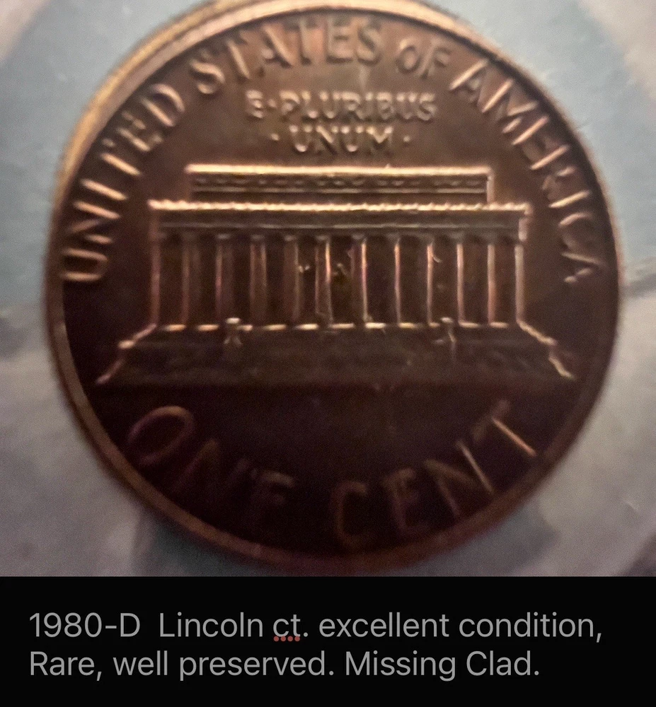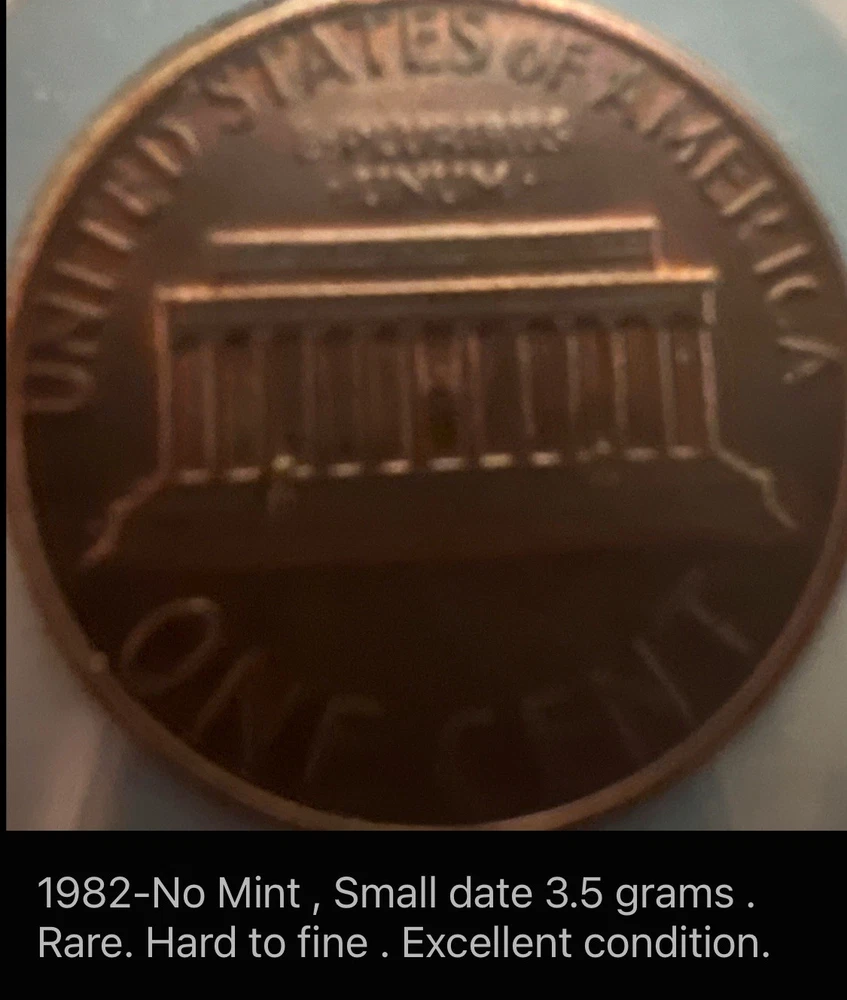 The product is a rare 1982 Small Cent Lincoln Memorial coin from the United States Mint. This coin is missing the clad layer and weighs 3.5 grams. It is classified as a circulated coin with a red color and a business strike type. The coin is ungraded and includes the "DDO" designation, indicating it is a "Double Die Obverse" coin, making it a valuable addition to any collector's portfolio. Plus 1980-D with missing CLAD. Rare , possible off center strike.