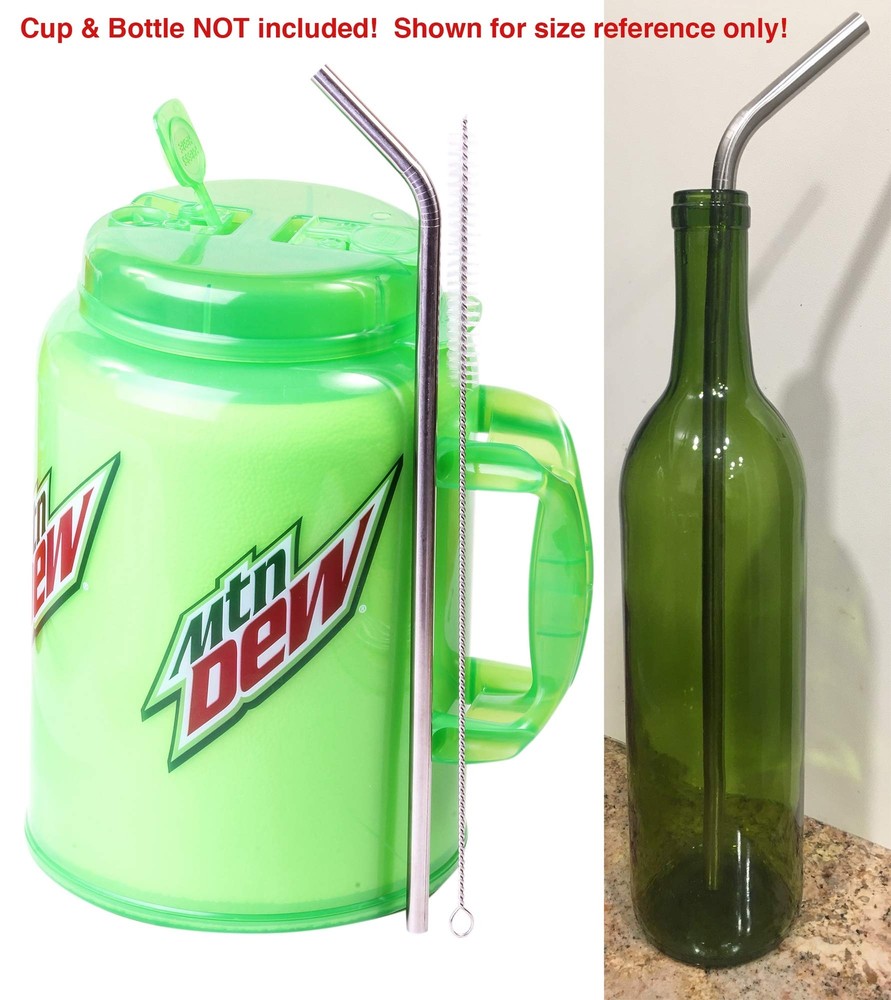 CUP NOT INCLUDED - STRAWS ONLY! - Cup is shown only for size reference so you can see how JUMBO these straws are! CUP NOT INCLUDED Brand - The #1 Stainless Steel Drinking Straw in the USA! 2 Straws + Cleaning Brush JUMBO MEGA SUPER SIZE! Perfect Fit for 100 oz MEGA Gulp Cups! 14" Length & ( 9mm ) 3/8" WIDE Width Same Width as the Flex Clear Plastic Straws that originally come with 100 oz Big Gulp Cups Please see the photos for ACTUAL size of the straws in a 100 oz cup - The Straw is touching the bottom of the cup in the photos. For 100 oz Travel To Go Mugs of all styles including Whirley Drink Works Plastic Foam Insulated Cups NON-TOXIC, BPA FREE - 100% Elegant Polished Food Grade Stainless Steel - Healthier than reusing plastic straws that might leach into your drink or small plastic bits start to wear off! DISHWASHER SAFE - ReUsable Washable Included HEAVY DUTY stainless steel cleaning brush cleans fully with each use. Upgrade / Replacement for the 13" or 15" flexible plastic straw that comes with the standard 100 oz Big Gulp Insulated Cups by Coca Cola, Pepsi, Mountain Dew, Sports Teams, Double Wall refill mugs sold at Gas Stations, Truck Stops Convenience Stores, Sport Arenas, Hospital, and more. Included Jumbo Cleaning Brush is 13" Long & 1/2" Wide! Also fits Hydr-8 & W.E. cups CUP NOT INCLUDED - STRAWS ONLY! - Cup is shown only for size reference so you can see how JUMBO these straws are! CUP NOT INCLUDED. CUP NOT INCLUDED - STRAWS ONLY! - Cup is shown only for size reference so you can see how JUMBO these straws are! Perfect Fit for JUMBO 100 oz Gulp Cups! SIZE SUPER LONG - 14" Length WIDE ( 9mm ) 3/8" Width. 2 Straws + Cleaning Brush - For 100 oz Insulated Travel To Go Mugs of all styles including Whirley Drink Works Plastic Cups NON-TOXIC, BPA FREE - 100% Food Grade Stainless Steel - Healthier than reusing plastic straws DISHWASHER SAFE - ReUsable Washable Included HEAVY DUTY Stainless Steel Cleaning Brush Cleans Fully with Every Use. Brush is 13" Long Upgrade/Replacement for the 13" or 15" Flexible Plastic Straw That Comes with The Standard 100 oz Foam Big Gulp Type Insulated Cups. CUP NOT INCLUDED - STRAWS ONLY! - Cup is shown only for size reference.