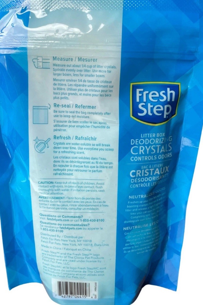 The Fresh Step Litter Box Deodorizing Crystals come in a 15oz container, with a total of 30oz of product included in this set. These crystals are designed to help eliminate odors in cat litter boxes, keeping your home smelling fresh and clean. Specifically formulated by the Fresh Step brand, these crystals are easy to use and effective in controlling litter box odors. Made in China, these deodorizing crystals are a convenient and efficient solution for maintaining a clean and odor-free living space for you and your feline companions.