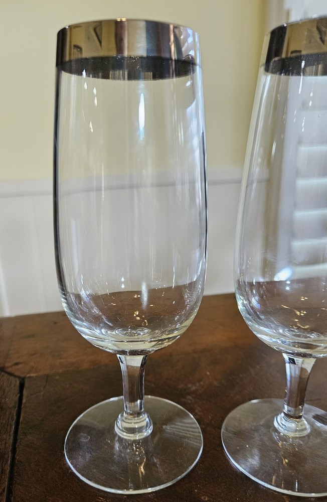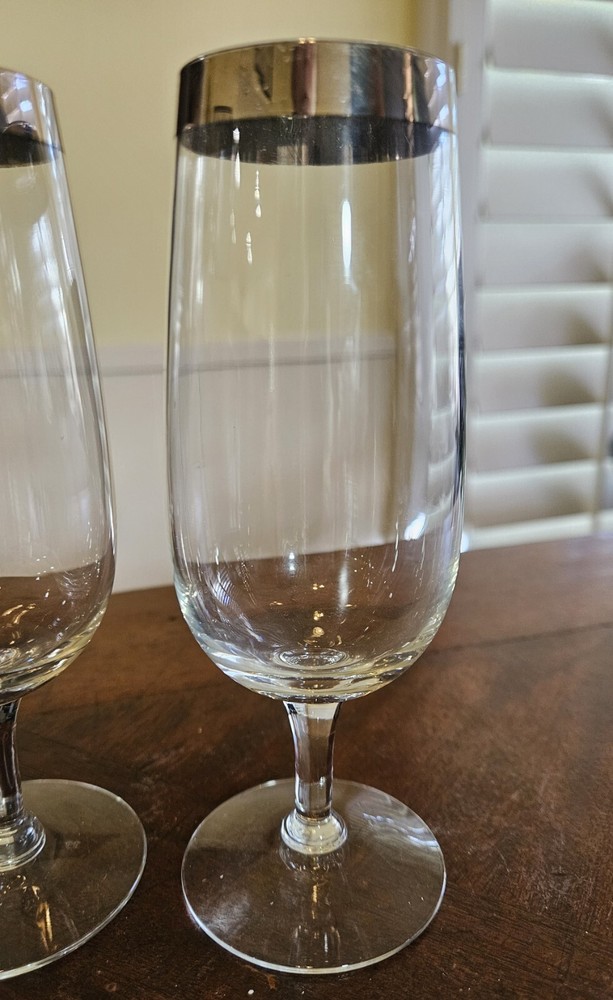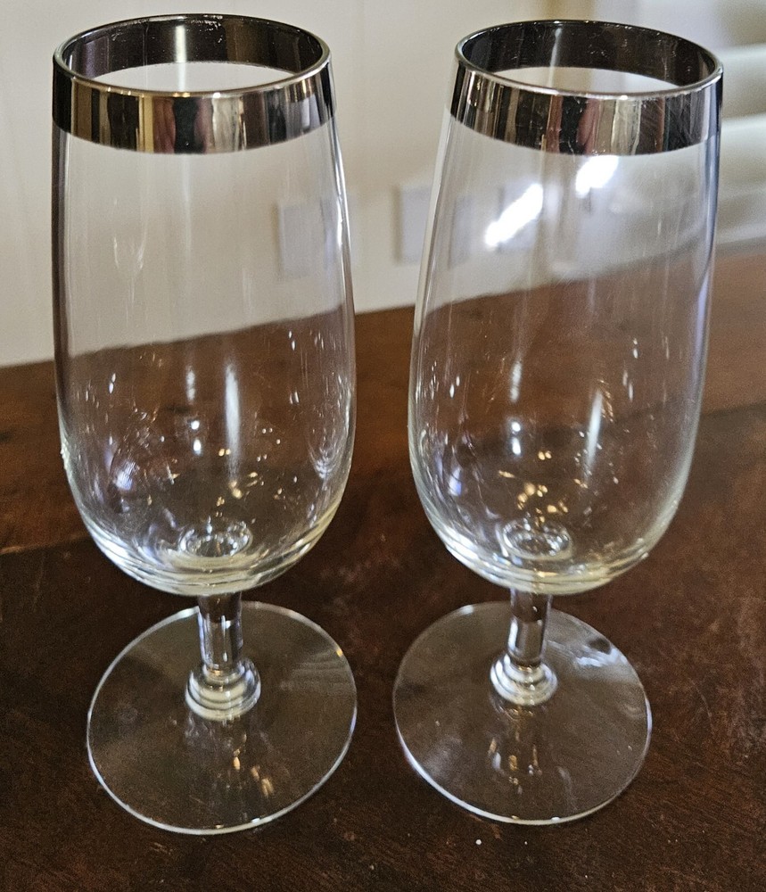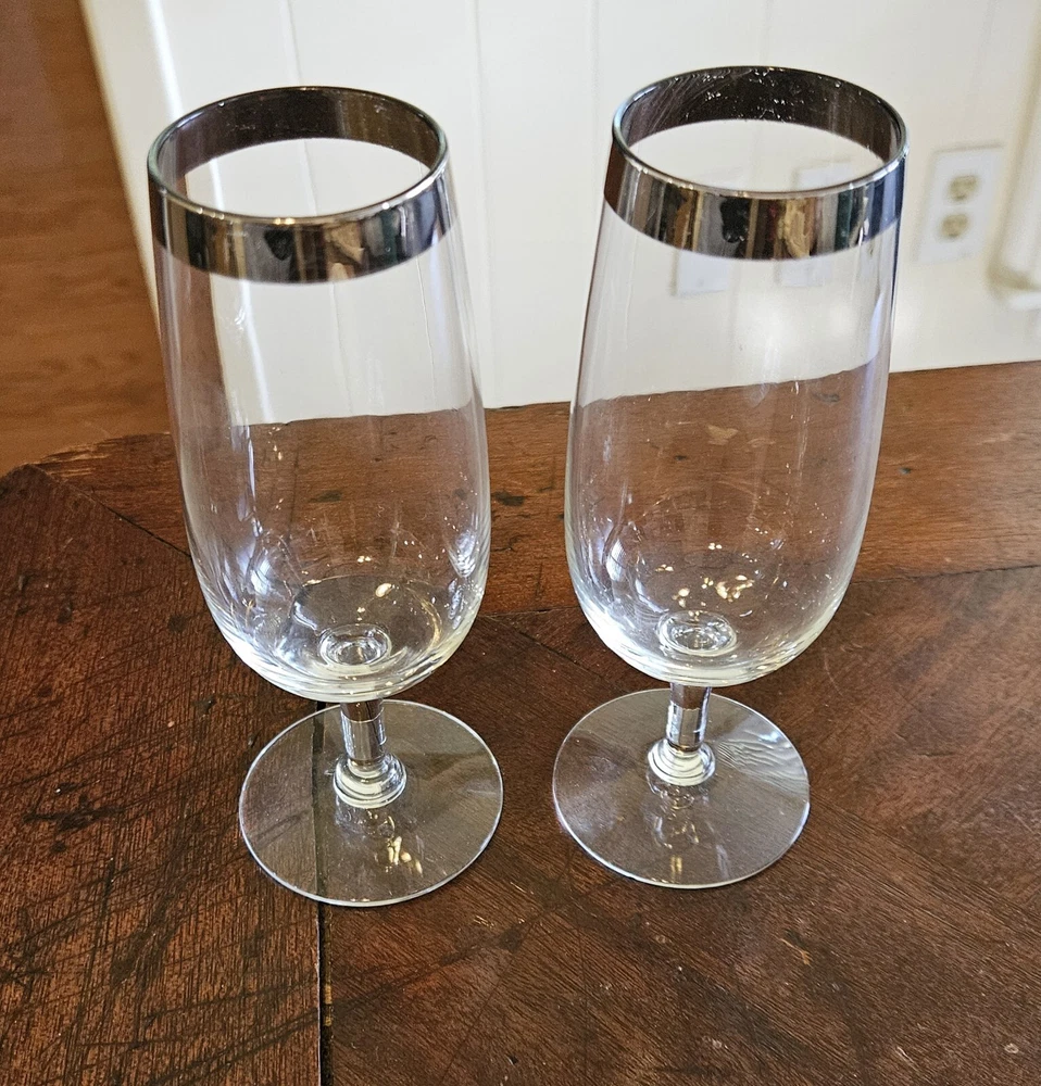 Home2 MCM Dorothy Thorpe Silver Rim Champagne Flutes 6" Short Stem Tapered Wine Glasses