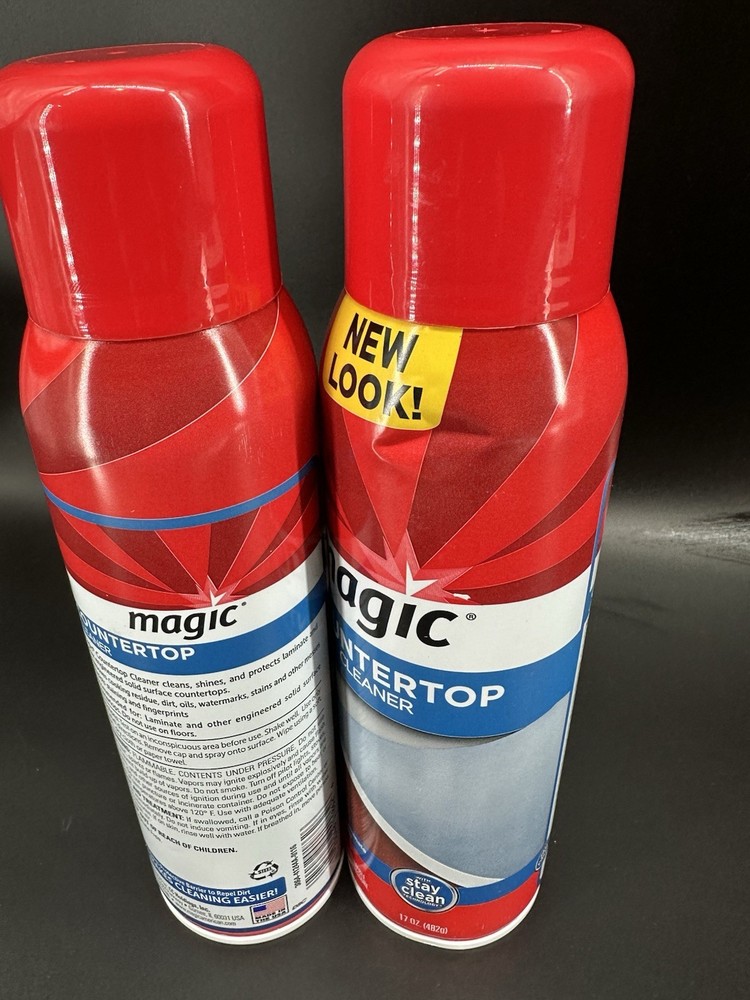 (2) cans Magic Countertop Ckeaner. One can feels full, one used some. I did provide the weights for you to judge. One small dent in one of the cans(pictured). Includes lids