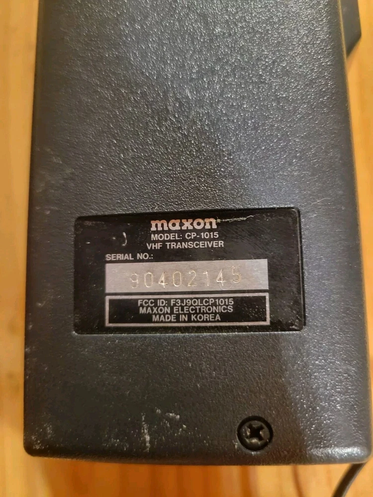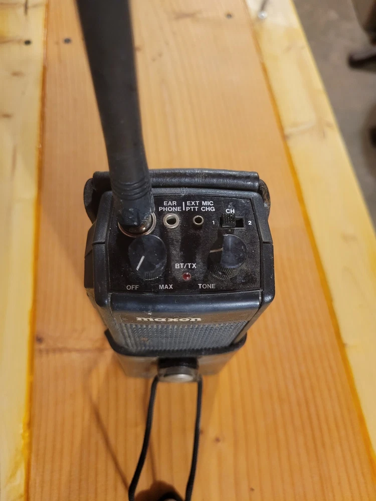 This listing is for two Maxon CP-1015 VHF Transceiver Radios along with leather holsters, holders, and chargers. These radios are made by the trusted brand Maxon. The model number for these radios is CP-1015 and they are designed for use in the VHF band. In addition to the radios, this listing also includes leather holsters, holders, and chargers to keep them safe, secure, and charged when not in use. These accessories are perfect for anyone who wants to keep their radios organized and protected. Whether you're a professional or a hobbyist, these Maxon CP-1015 VHF Transceiver Radios are a great addition to your collection. Get yours today! Both radios turn on and both chargers work when plugged in. They could use a good cleaning but look to be in good condition. The rubber on the antennas is old and is flaking off a bit, but still appear to work fine.