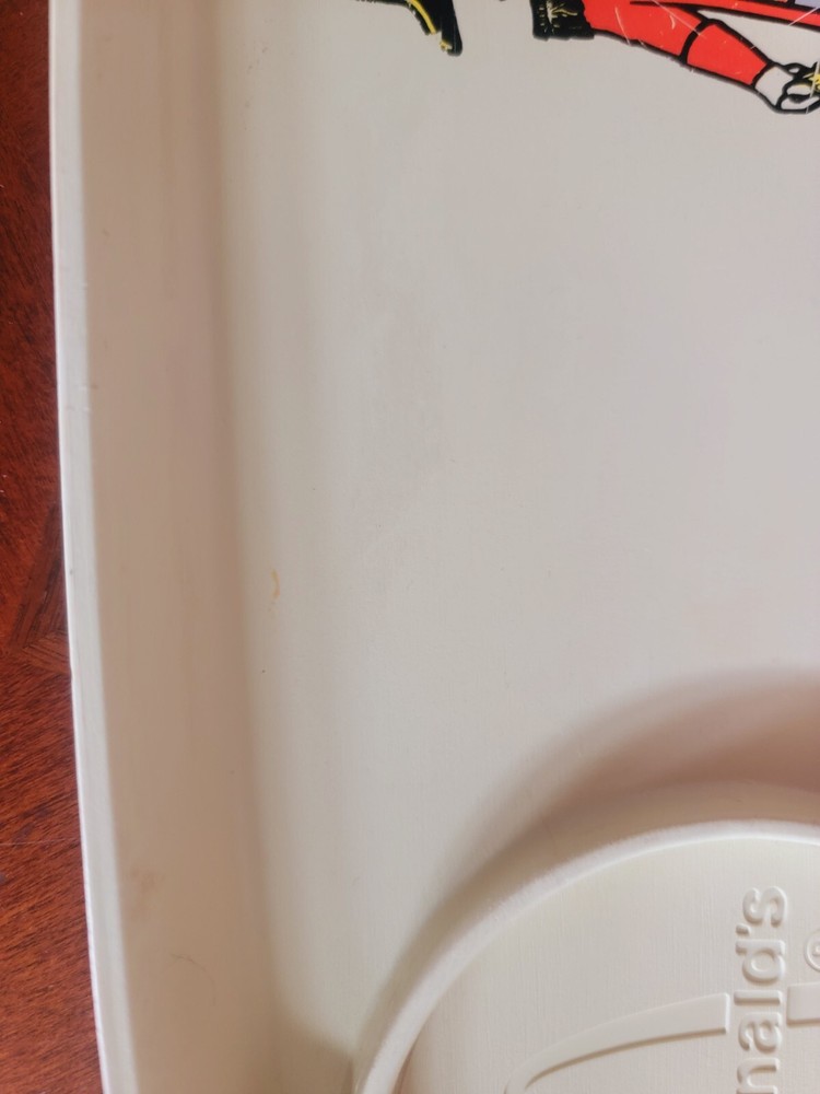 Step back in time with these vintage 1970s McDonald's Captain Crook Happy Meal Trays, a delightful throwback for collectors and fans of the iconic fast-food chain. The set includes two plastic meal trays adorned with the beloved McDonald's Captain Crook character, showcasing the whimsical and nostalgic branding from a bygone era.Ideal for display or casual use, these trays are a testament to the era's playful marketing strategies. Whether you're a McDonald's enthusiast or a collector of retro Americana, this tray set is sure to add a touch of vintage charm to your collection or kitchen decor.