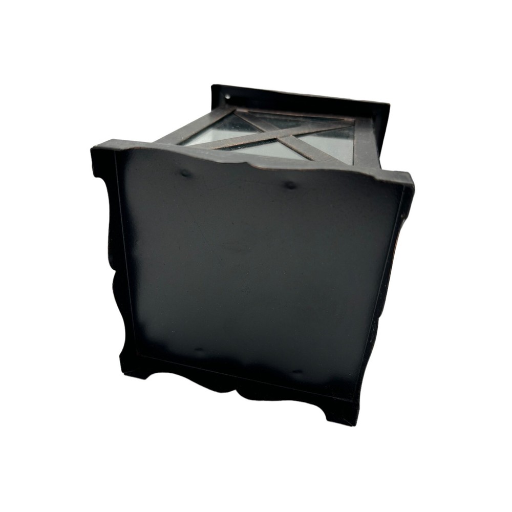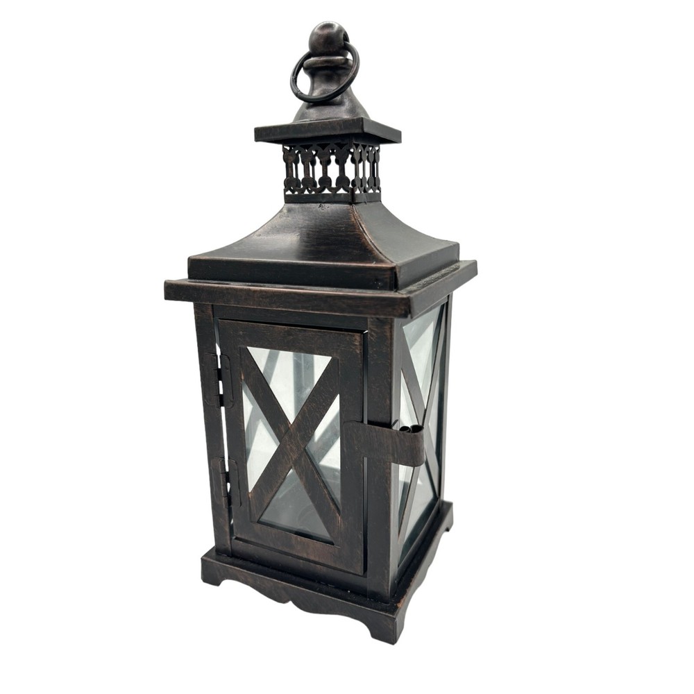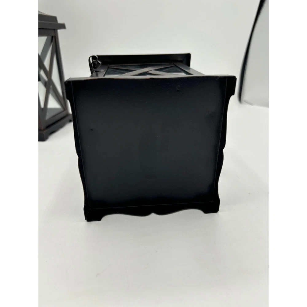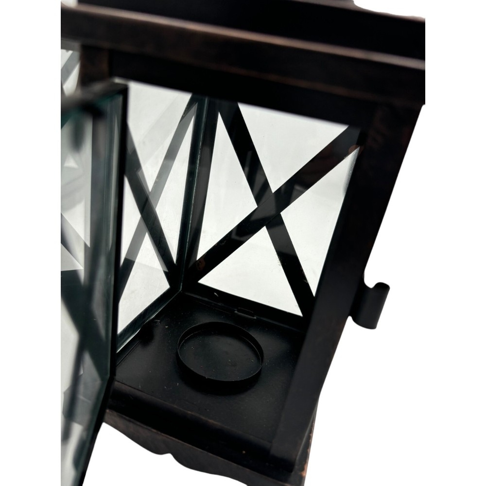 2 Metal and Glass Candle Lanterns Oil Rubbed Bronze New 10" x 4" Both are in excellent condition unused Votive candle holders