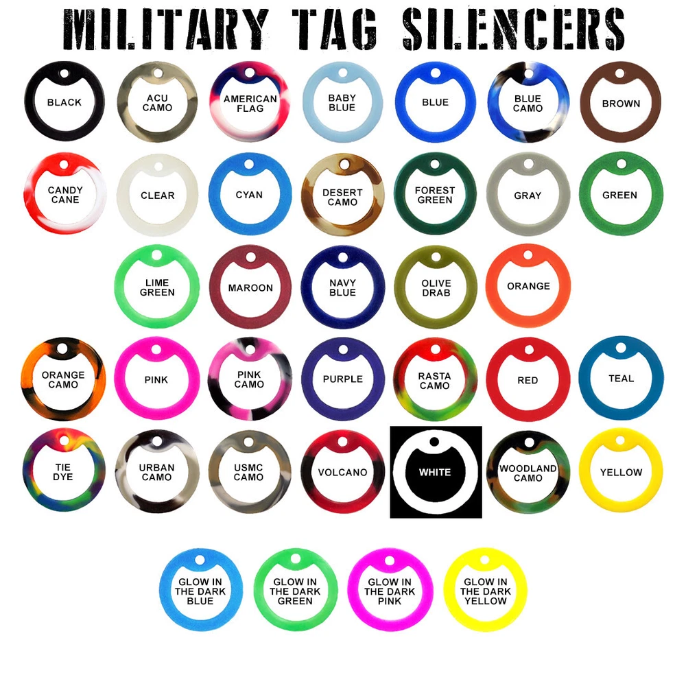 Custom Embossed Military Dog Tag Set PRODUCT DESCRIPTION The Dog Tag set includes: 2 Custom Embossed Brass Military Dog Tags 2 Stainless Steel Ball Chains (1 - 27" & 1 - 4.5") 2 Dog Tag Silencers - You choose a color (If no color is selected black will be sent) Our Custom Military Dog Tags are made with real Brass. Tag-Z Military Dog Tags are regulation sized Military dog tags. They are 2 inches wide by 1.125 inches tall. Our tags come with real US military chains. The chain is a US made T304 Stainless Steel chain and is made with stainless steel made in the USA. Our chains are the same chains used by the US Military for our soldiers. Tag-Z Military ID tags also come with black military dog tag silencers to protect the tag and keep it from jingling. To close the chain - Put the ball into the connector and pull both sides of the chain away from the connector until the ball ‘snaps’ into place. These are really tough stainless-steel ball chains so sometimes it takes a good tug. HOW TO ORDER *** If we do not receive your information, we will send you blank tags. *** Our custom embossed tags have 5 lines. Each line has 15 spots to put a character or space. Spaces count as a spot. Text is LEFT ALIGNED . The Available Characters are: A B C D E F G H I J K L M N O P Q R S T U V W X Y Z 0 1 2 3 4 5 6 7 8 9 & , . - / ( ) @ * + ! ? “ : ; $ # Here is an example of what to send for your order: Silencer Color: Line 1: JONES Line 2: JANET A. Line 3: 123-45-6789 Line 4: A POS Line 5: CHRISTIAN SHIPPING We ship free to the United States and Puerto Rico. We are enrolled in the Ebay Global Shipping program. For international shipments please check the shipping tab for rates. ABOUT US We specialize in Custom made Military dog tags and Custom pet tags. If you have any questions or concerns, please send us a message through Ebay and we will be glad to help!