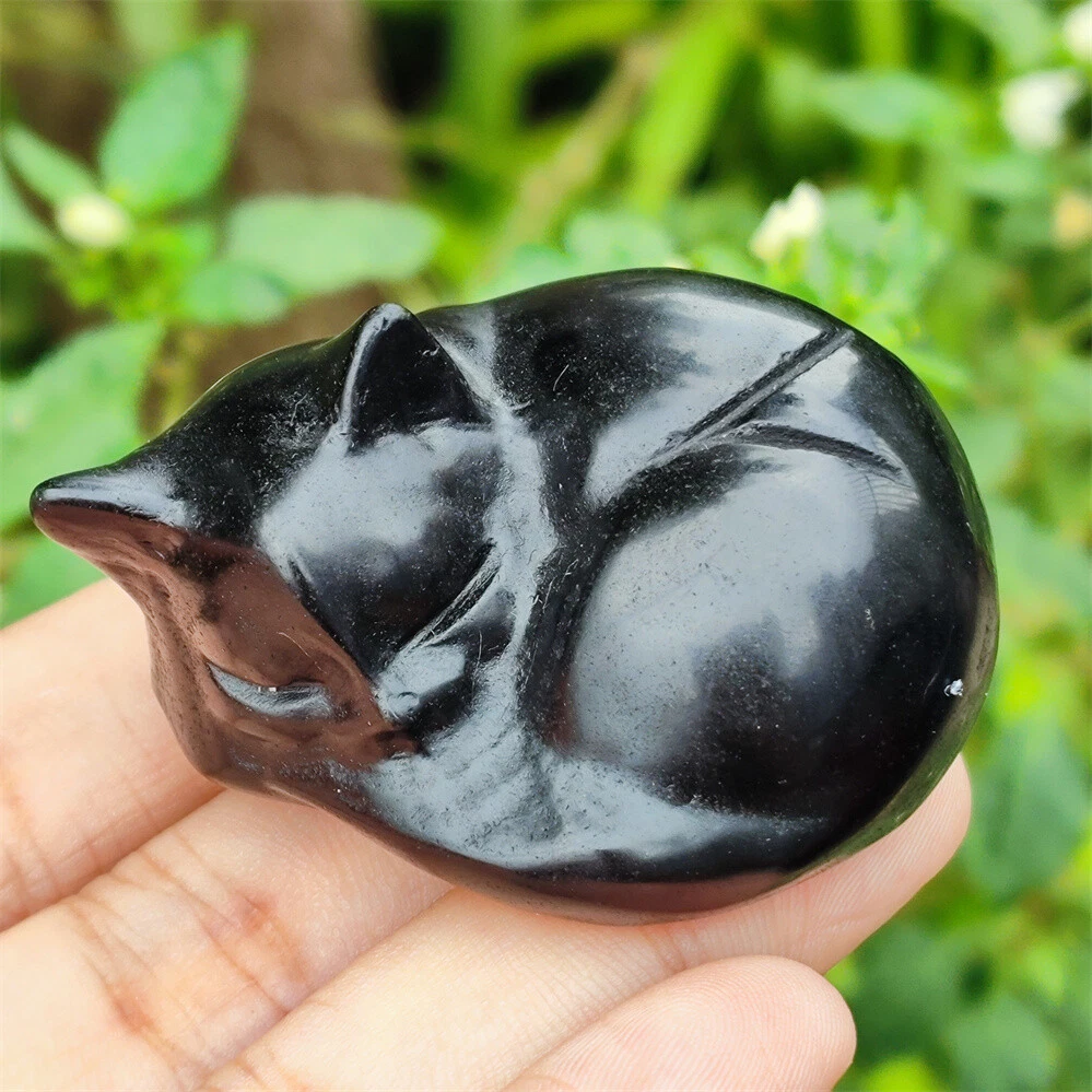 2" Natural Obsidian Quartz Crystal Hand Carved Cat Skull Reiki Healing Gift 1pc