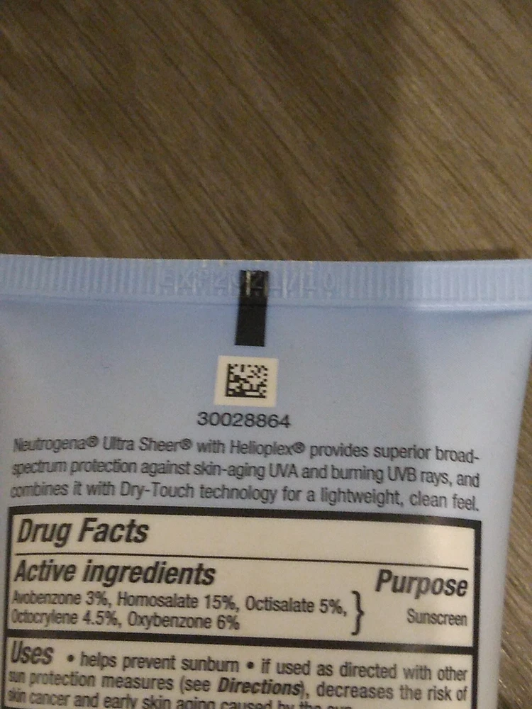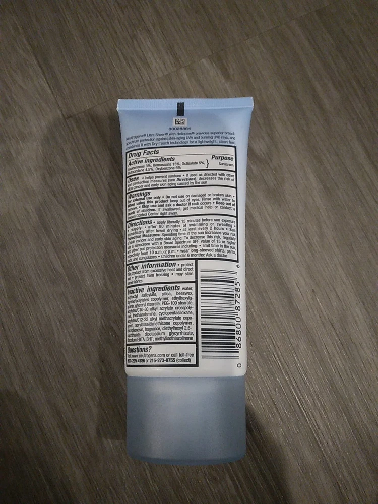 UPC: 086800872856 Sun Protection Factor (SPF): 85 Volume: 3 fl oz Expiration Date: ,,2021 ,,, Formulation: Lotion gtin13: 086800872856 Body Area: Arm, Chest, Face, Full Body, Leg, Neck Brand: Neutrogena Size: 3 oz Product Line: Neutrogena Ultra Sheer Dry-Touch Sunscreen Type: Chemical Sunscreen