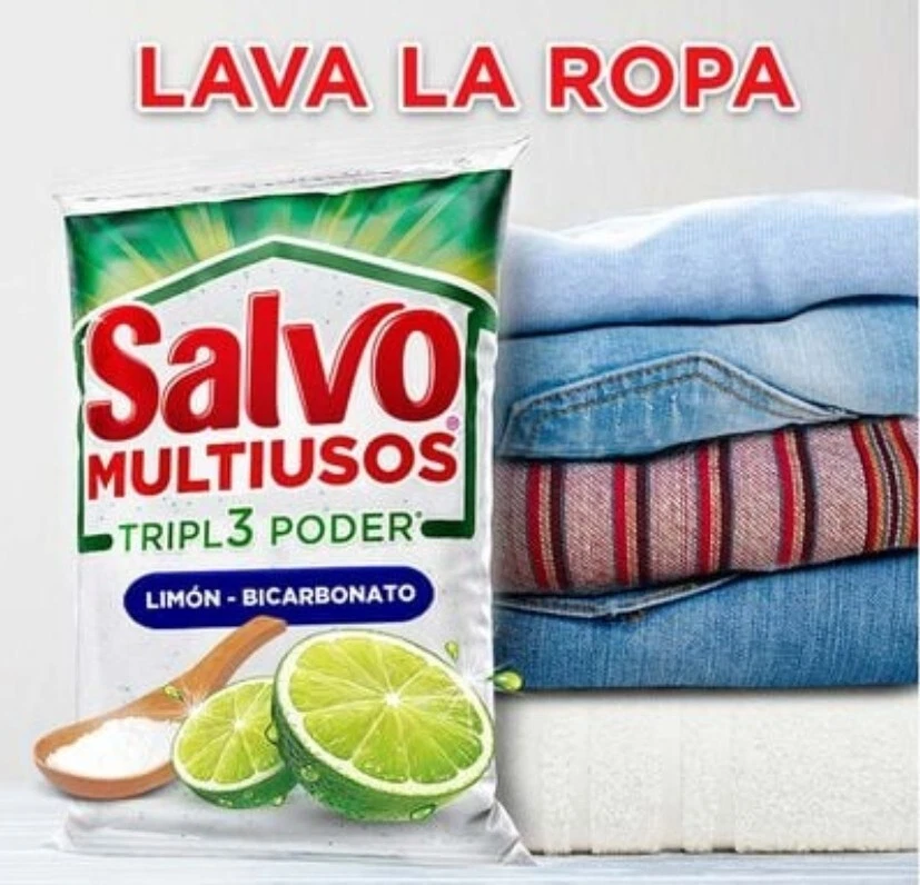 This is a 2 pack of Salvo Multiuso Lemon Dish Soap Powder, each pack containing 1 kilo. It is non-toxic, eco-friendly, and features 2 Salvo Triple Poder en Polvo. Made in Mexico, each pack weighs 1 kg. Ideal for kitchen use, this dish soap has a lemon scent and is designed for household cleaning.