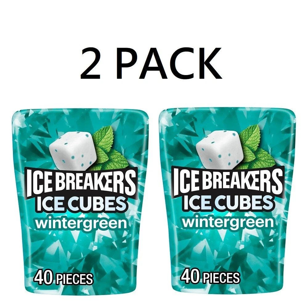 2 PACK Ice Breakers Ice Cubes WINTERGREEN Sugar Free Flavored Gum 40 pieces each