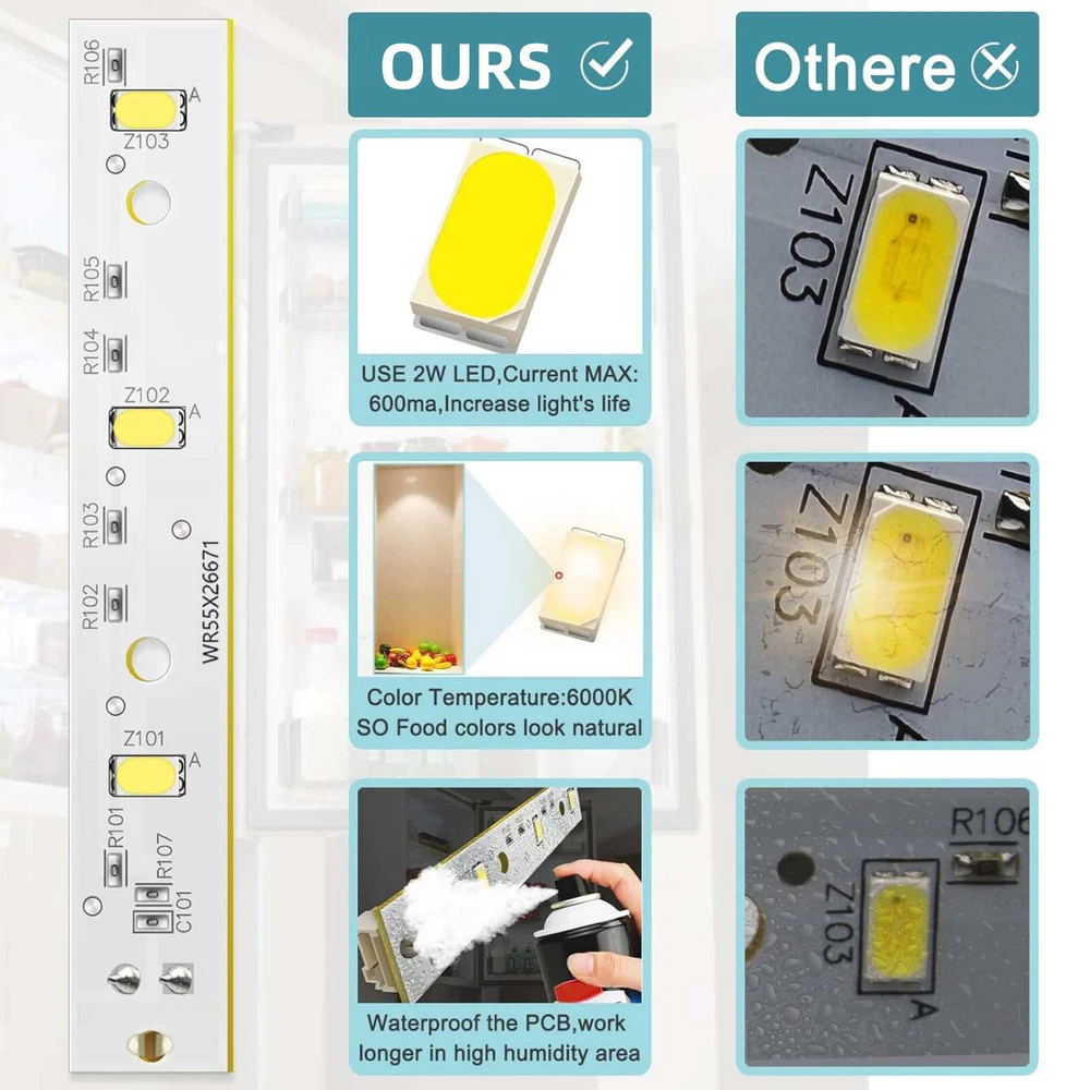 Product Description 2 PACK Refrigerator LED Light Board WR55X26671 4468532 For GE Replace Part Features: Seamless replacement, quick return to bright: Designed to solve the problem for GE refrigerator LED lights flashing, dimming or not bright, perfectly match the original light slot, no complex tools or expertise is required, and the refrigerator is immediately bright after quick replacement. Wide compatibility, model worry-free: Suitable for a variety of refrigerator models, showing excellent compatibility, to ensure that each refrigerator can find the right solution, one replacement, long-term peace of mind. Bright energy saving, economic choice: The use of high-efficiency LED chips, significantly improve brightness, while greatly reducing energy consumption, long-term use for family savings, is an economical and practical lighting upgrade. Durable, quality assurance: After careful design and rigorous testing, LED light replacement parts are durable and stable, and the center reinforcement design effectively prevents damage, providing lasting light protection for the refrigerator. Waterproof and moisture-proof, safety guard: Pay attention to safety performance, LED light replacement parts after waterproof treatment, stable work in humid environment, prevent short circuit and other safety hazards, create a safe use environment. Easy DIY, universal solution: The replacement kit is simple in design, and users can quickly replace their fault lights without relying on professional help. In just a few simple steps, you can restore the interior of your refrigerator and enjoy convenient DIY fun. Specifications: Material: PCB+LED Size: 3.97*0.6in / 101*14.24mm Quantity: 2pcs OEM Part Number: WR55X26671 Replacement Part Numbers: PS11767930, AP6035586, 4468532, EAP11767930 Compatible Brand: For GE Compatible Models: CZS22MP2NBS1, CZS22MSKEHSS, CZS22MSKKHSS, DSE25JEMGCDS, DSE25JEMKCDS, DSE25JGHECBB, DSE25JGHECWW, DSE25JGHKCBB, DSE25JGHKCWW, DSE25JMHECES, DSE25JMHKCES, DSE25JSHECSS, DSE25JSHKCSS, GSE23GGKJCBB, GSE23GGKJCCC, GSE23GGKKCBB, GSE23GGKKCCC, GSE23GGKKCWW, GSE23GSKJCSS, GSE23GSKKCSS, GSE25GGHJCBB, GSE25GGHKCBB, GSE25HEMKHDS, GSE25HGHJHBB, GSE25GGHJCCC, GSE25GGHJCWW, GSE25GSHJCSS, GSE25HEMJHDS, GSS25GMHJCES, DSE25JGHGCBB, DSE25JGHGCWW, DSE25JMHGCES, PSE25KBLJHTS, PSE25KGHGHBB, PSE25KGHGHWW, PSE25KSHGHSS, PSS28KSHGCSS, PZS22MMKEHES, PZS22MMKGHES, PZS22MSKEHSS, PZS22MSKGHSS, 4468532, AP6035586, PS11767930, EAP11767930, DSE25JBLJCTS, DSE25JSHGCSS, GSS23GGKJCBB, GSS23GGKJCWW, GZS22DGJNFBB, GSS25GMHNCES, GSE23GSKNCSS, GSS25LSLPCSS, GSE25GGHNCBB, GSS23GGKNCBB, GSS25IGNBHWW, GZS22IYNPHFS, GSS25LSLNCSS, GSS25GMHPCES, GSS25IBNBHTS, XSS25GGHNCWW, GSS25GGHPCBB, GSE23GGKPCWW, GSE23GGKJCWW, GSE23GGKKCBB, GSE23GGKKCCC, GSE23GGKNCBB, GSE23GGKPCBB, GSE23GGKPCCC, GSE23GGKRCBB, GSE23GGKRCCC, GSE23GGKRCWW, GSE25GGHKCCC, GSE25GGHRCCC, GSE25GGHRCWW, etc. Package Included: 2 x LED Light Board Payment Shipping Returns Contact Us We accept all verified payments from ebay. Orders will be shipped after receiving cleared payment. Payment due within 7 days after auction ends and for buy it now listings. We ship most of our orders within 24 hours, and may up to 48 hours. If you want faster shipping way. Please contact us before making payment. Sometimes due to problems with our transportation company system, your shipping information may be delayed to update. We recommend that you try again after 3-4 days. If you still haven't checked the shipping information, you can contact us by ebay message. Always believe we can figure things out with communication, if it comes to return, the pacakge must be intact and the same as you receive. If you have any questions, please feel free to email our service specialists 24 Hours a Day, 7 Days a Week. We will reply you ASAP. Return/refund is accepted within 30 days after the buyer receives the item. NO exchange will be accepted after 30 days from the date when the item is received. Please contact us first before returning your product!!! If you have any questions, our Customer Service staffs welcome you to email us. We strive to answer all questions and resolve any problems as quickly as possible. You can contact us 7*24, we will reply at the first time, and we will surely solve your problems. Note: 1.We try our best to reply to your emails as soon as possible, however, due to high volume of daily incoming emails and time zone difference, we may not be able to reply your emails immediately. Please allow 1 business days for us to response. If you do not receive any reply from us, please check your email ensuring your mailbox has not reached full size. 2.Due to some ISP SPAM filter settings, you may not be able to receive our replies; if you have problems receiving our emails, you may need to use a different email account to contact us. 3.Please give us the opportunity to resolve any problem. We understand the concerns and frustrations you might have, and will try our best to resolve the issues. Please email us before leaving any negative feedback or open any dispute on PayPal. 4.We care about our valued customers, and will always try to help you. So if you have any problems, please e-mail us immediately. Payment We accept all verified payments from ebay. Orders will be shipped after receiving cleared payment. Payment due within 7 days after auction ends and for buy it now listings. Shipping We ship most of our orders within 24 hours, and may up to 48 hours. If you want faster shipping way. Please contact us before making payment. Sometimes due to problems with our transportation company system, your shipping information may be delayed to update. We recommend that you try again after 3-4 days. If you still haven't checked the shipping information, you can contact us by ebay message. Returns Always believe we can figure things out with communication, if it comes to return, the pacakge must be intact and the same as you receive. If you have any questions, please feel free to email our 