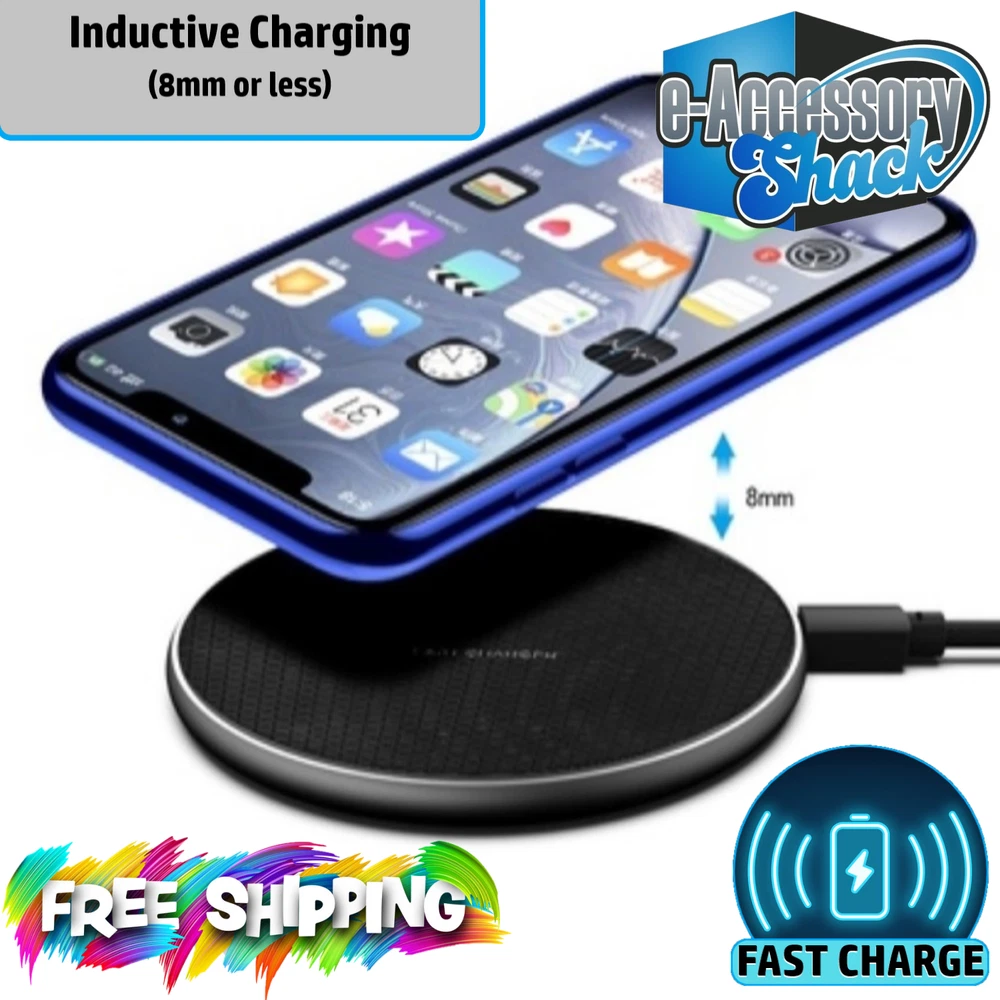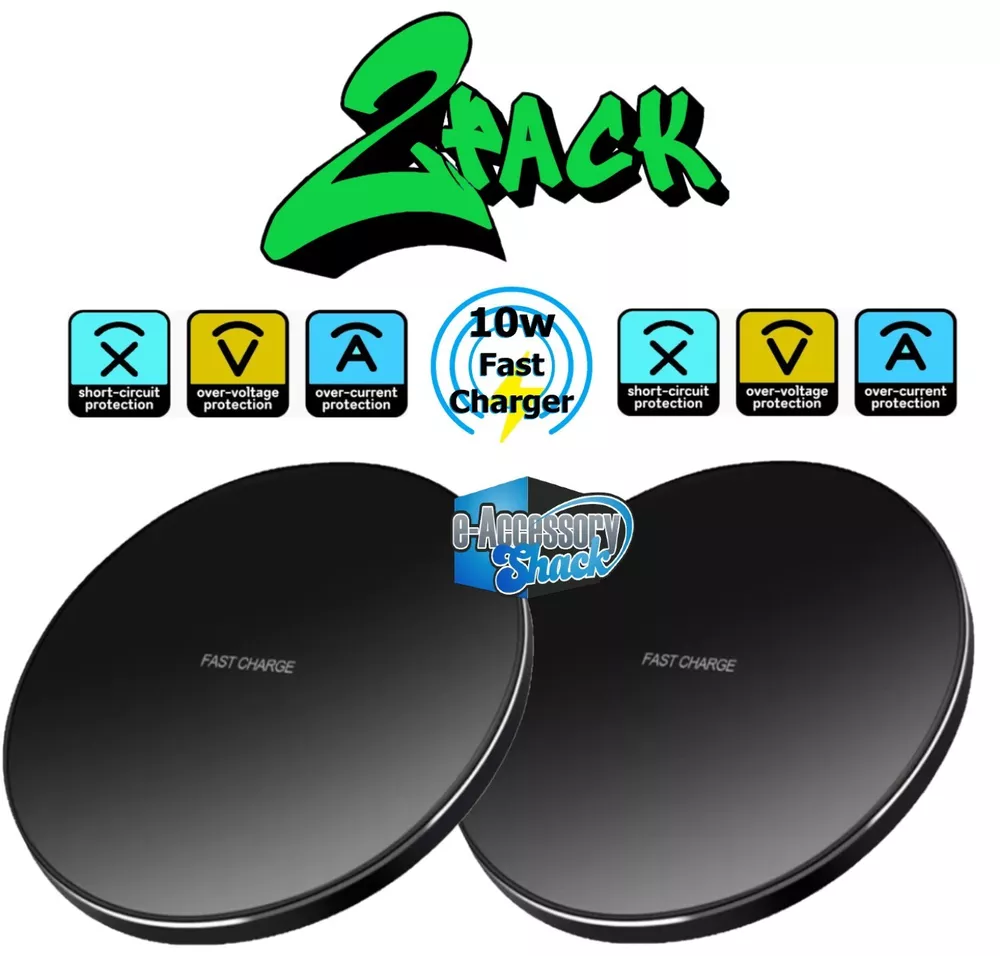 2 PACK Wireless Fast Charger Charging Pad Dock for Samsung iPhone Android Cell Phone Will charge most phones from empty to full in 3-4 hours or so as long as you use a 10w or higher power source. That means the power source's output is rated at 2A/5V or higher. 3-4 hours charge time is considered "fast" by most industry standards. Do faster ones exist? Yep, and I sell those too, in my eBay store at a higher price. This one for sale here is a very good combination of value vs performance. Go to bed at night and put your phone on this, it will be fully charged in the morning every time. I offer 60 day free returns for ANY reason. Buy with confidence. Specifications: Color: Black Output: 5W/7.5 W/10W Charging efficiency:>75% Charging frequency: 110-205 kHz The package includes: 2 x Wireless Fast Charger Pad 2 x 3ft Micro USB Cable Power Source is NOT included, but I sell them in my eBay store if needed. You'll save a % if you by 2 or more items from my store at one time, applied on last page of checkout. Typically it's 1% off for 2 items, 10% off for 3 items, 21% off for 4+ items at one time.