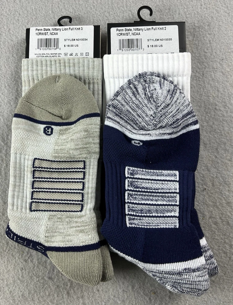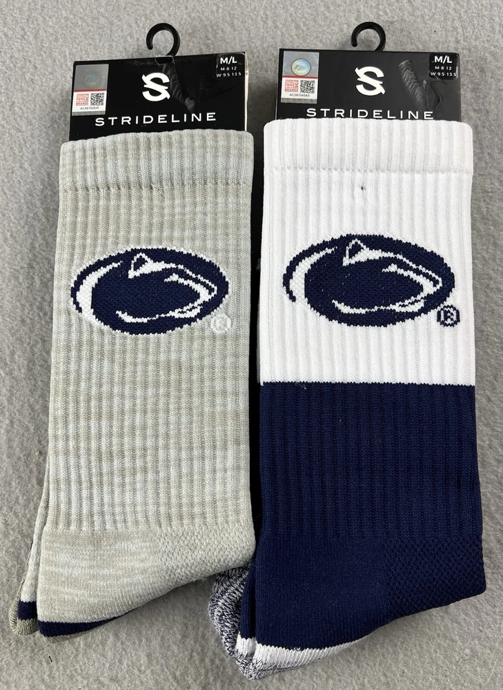 2 PAIRS Strideline Penn State Nittany Lions Crew Socks Gray/White Men’s M/L