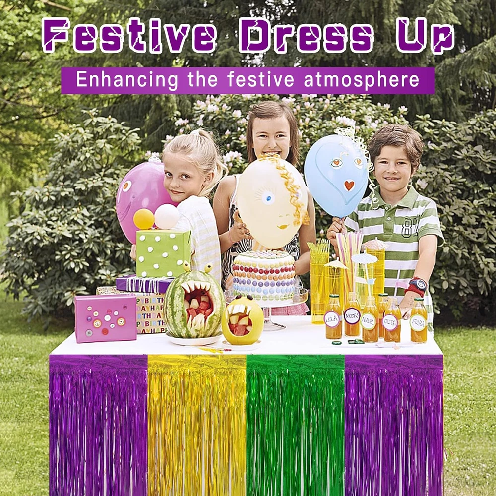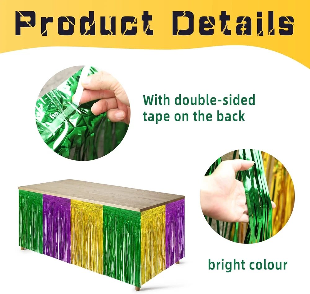 2 PCS Mardi Gras Party Table Skirt- 29 X 109 Inch Mardi Gras Metallic Fringe Tab