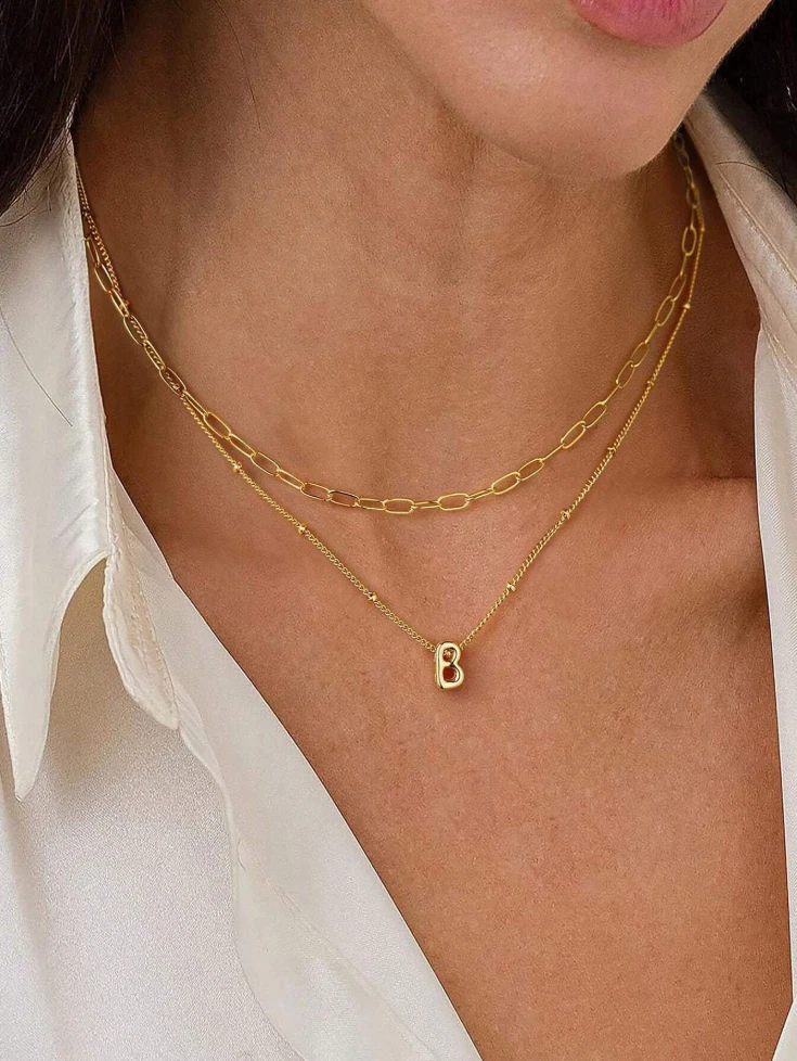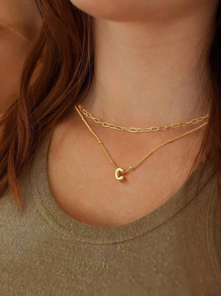 Personalized Multi-Layer Initial Necklace Set 2 PCS Set Initial Pendant Gold Letter Necklace Enhance your daily ensemble with this elegant 2-piece multi-layer necklace set. Featuring a glossy copper finish and customizable A-Z English initial perforated pendants, this necklace adds a touch of sophistication to any outfit. Perfect for casual wear or special occasions, it's a versatile addition to your jewelry collection. Material: High-quality stainless steel with a glossy copper finish Design: Multi-layer bead chain with perforated initial pendants (A-Z) Style: Suitable for daily casual wear and special occasions Length: Adjustable chain to fit comfortably around the collarbone Durability: Tarnish-resistant and hypoallergenic materials FREE SHIPPING