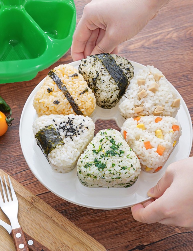 When it is used as a rice , it can be convenient to lay plastic wrap in the mold for outdoor activities or to carryout Take out the rice balls its heat resistance temperature is -10-120°, When heating in the microwave oven, turnon the body to heat, it is recommended that the microwave time is high for 2 minutes, and can not be used in theoven, dishwasher and dryer. [Product size]:Please refer to the picture for detial. [Material]:Polypropylene [Special design]:The has anti-stick rice design, the rice is not easy to stick rice. lt is not only a rice ballmold, but also can be used as a rice . This bento has a lid that keeps the dust out and keeps the insideclean when you don't need it. [Widely Applied]:You can make 6 rice balls at a time. rice weighs about 80g. lt can be used as an onigiribox and put the onigiri in it so you can take it with you.lt's handy for picnics because vou can take it with you. Youcan also put 3 rice balls on side and side dishes on the other side. Push-cap can be used as a lid. [Package include]:lncludes 2 pcs Rice bento .