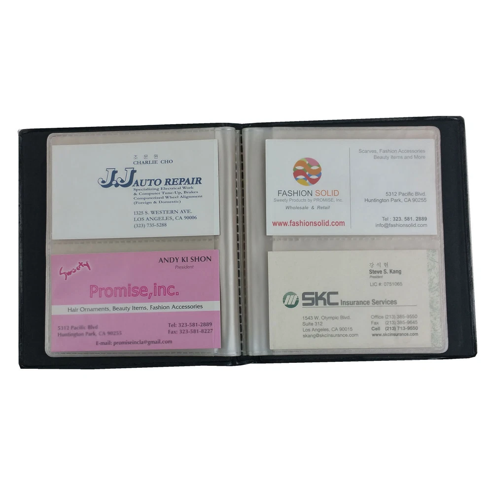 2 PCS x 80 Cards Business Name ID Credit card Holder Book case Keeper Organizer US Free Shipping 100% Satisfaction Guarantee Premium Quality Quantity: 2 pieces Color: Black 80 Cards Holder Book Case x 2 PCS 20 Sheets (40 Pages) inside (4 Cards per Sheet) Book Size: 4.5" x 5" x 0.4" Easy to Carry and Use Keep your Business Cards Organized Material: PU and Plastic All weekend orders after PST 3:00pm Friday or holiday orders are shipped out following Monday or working day. Return Returns must be made within 30 days from package receiving date. Contact us for returning address. Buyer is responsible for the return postage unless the case is defective or a wrong item is sent. Merchandise must be returned in UNUSED, new condition .