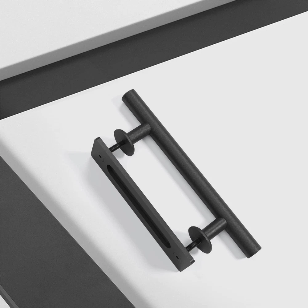 Superior Quality: Solid steel, fine black coated surface, ensures years of beauty and longevity. All items have been multiple inspected before on market Fine Design: Smooth polished chamfered edges, ergonomically design prevent any unexpected injury and provide a more comfortable handing feeling Easy Install: Fit door thickness from 1'' to 1-3/4''. And all necessary parts and tools we are ready for you Package: (2)12''Pull Bar, (2)8-5/8''Finger Pull, (4)Round Pad, L-Wrench, Screws 24 Hours Stand By: specialize in sliding door and hardware many years, if there any problem or anything missed or broken, pls let us know, we are whole day online to help you