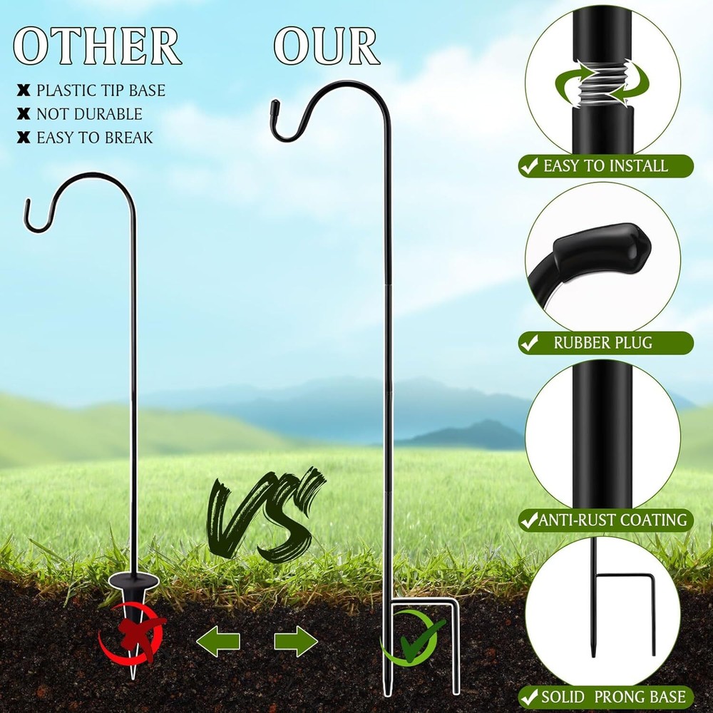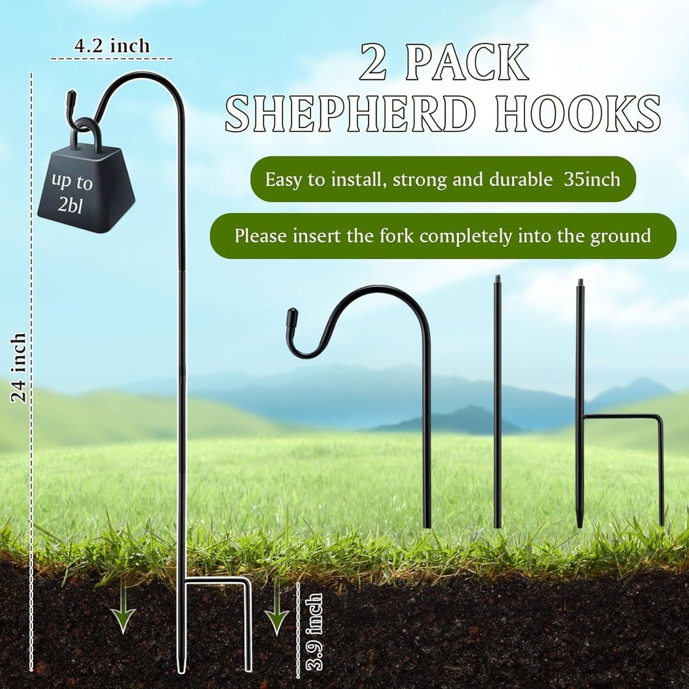 Fast Shipping On All Items 30 Days Money Guarantee Customer Support Excellent Service 100% Satisfaction Satisfaction Guaranteed 2 Pack 24 Inch Adjustable Shepherds Hook for Outdoor Metal Rust Resistant Steel Specification Item model number ZO--0819 Item Package Quantity 2 Item dimensions L x W x H 14.17 x 11.02 x 0.1 inches Mounting Type Ground Mount Color Black Product Dimensions 14.17 x 11.02 x 0.1 inches Weight Limit 2 Pounds Item Weight 0.62 Pounds Number of Hooks 2 11.02 inches x 14.17 inches x 0.1 inches. Weight: 0.62 lb Item Description Quantity and Quality: the package provides you with 2 shepherd hooks, Load capacity within 2 lb, each standing 24 inches tall and a diameter of 0.31 inch metal tubes, these hooks are constructed with durable steel, ensuring lasting use; These versatile hooks are ideal for adding creative touches to wedding decorations, embellishing your garden, or any other occasion where the aesthetics matter Ease of Installation Saves Time: assemble in a matter of minutes with our outdoor shepherd's hooks that require no tools for installation; Each hook includes a base with 2 prongs and a pole and a shepherd hook; Simply align the holes and twist the poles together, and then embed into the ground; Additionally, save time and energy as these hooks can be easily inserted into the ground, ready to hold your beautiful decorations Multifunctional Decor Piece: offer your outdoor environment a touch of with our multifunctional shepherds hooks for outdoor 24 inch; They are perfectly suited to hang flower pots, solar lights, lanterns, garlands, candlesticks, string lights, wind chimes, bird feeders, among other items, adding enchanting vibes to your personal space; You can decorate your flower beds, walkways, or shrubbery Good Stability: unlike regular hooks, these plant hooks outdoor offer enhanced stability, thanks to their double pronged feet and extra long base, they can be easily embedded into the ground and maintain a steady upright position; Moreover, the smooth powder coating not only prevents rust and oxidation, but its sleek black finish also adds a dash of to any space; Get ready to enjoy steady, upright, and unwavering decoration holders that endure the test of time Versatile Usage Scenarios: our outdoor hooks for wreath are suitable for a myriad of occasions, including weddings, anniversaries, parties, and other festive celebrations, making them an all season necessary addition; They withstand various weather conditions, showcasing their adaptability and dependability; Create unforgettable memories with our flexible hooks that blend seamlessly into any event or season Features: The package provides you with 2 black garden stakes, each presenting a suitable size of 24 inches tall and a diameter of 0.31 inch metal tubes. These hooks are constructed with durable steel, ensuring lasting use. These garden planter stakes exude multifunctionality. They can be applied to hang small flower pots, solar lights, lanterns, garlands, holiday decorations, etc. From beautifully adorning your outdoor living space with hanging baskets and wind chimes, to marking walkways and flower beds, these hooks are versatile. Specifications: Material: steel Color: black Size: about 24 inches tall and a diameter of 1/4 inch metal tubes Package includes: 2 Pieces 24 inch tall heavy duty shepherds hook Notes: Manual measurement, please allow slight errors on size. The color may exist a slight difference due to different screen displays. Pointed items are included, please be careful when using and please keep them away from kids. About us We offer the best prices around on high quality products. Our E-store includes media such as books, movies, music and games while offering electronics, toys, sporting apparel, clothing, tools, general home, garden items and more. Shipping We are always working hard to ensure your package arrives as soon as possible. Please understand that some factors like weather, high postal traffic, and the performance of shipping companies are outside of our control. We offer free shipping to the lower 48 states and ship within 2-3 business days of payment, usually sooner. We do not accept P.O. Boxes. Please provide a physical address. For shipping outside of the continental USA, we only use eBay's Global Shipping Program.The item is shipped to KY and then sent to the rest of the world. International customers are responsible for all duties and taxes. Continue to check out to calculate costs for shipping the item to your country. Messages regarding eBay's Global Shipping Program MUST be directed at eBay EXCLUSIVELY. Returns We offer a 30-Day Return Policy on items in which you are not completely satisfied with. You have the option of a full-refund or an exchange of the item. No returns are available on items shipped outside of the USA Satisfaction We try over very best to make sure every customer is completely satisfied. If there's a problem, message us! We're happy to help. Payment Options Shop With Confidence