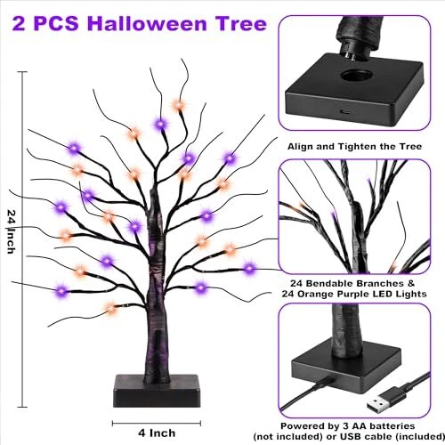 Return Policy Fast Delivery Trusted seller 2 Pack 24 Inch Black Halloween Tree with 24 LED Orange Purple Lights, USB/Battery Operated Halloween Table Decorations Tree Light with Timer, Scary Halloween Decorations Indoor for Home Party Decor Product Description Create a Spooky Atmosp - You will get 2 Pack Black Halloween Birch Tree comes with Orange Purple LED lights. Our halloween tree lights are designed to add a touch of Halloween to any space. Whether you are planning a spooky Hallowen evening at home or hosting a Halloween party, this Halloween table decorations tree is sure to impress. Versatile Usage - You can use these beautiful indoor Halloween decorations lights to decor table, bedroom, mantle, fireplace, patio, bar, office, shop, etc. These versatile Halloween lights battery operated are ideal for Halloween home decor, Halloween party decorations, Halloween birthday party decor, classroom decorations, or any other Halloween activities. USB or Battery Powered - This Halloween indoor decorations tree light has two power modes for you to choose from, one powered by 3 AA batteries (batteries not included) and the other powered by a USB cable (USB cable included). The dual power supply option allows you to choose between USB or battery power, making it convenient to use in any location. Adjustable Branches and Timer - The branches of the halloween decor tree lights can be easily adjusted, allowing you to create your desired shape. The timer function (6 Hours on - 18 Hours off) also allows you to set the lights to automatically turn on and off, saving energy and hassle. Great Halloween Gift Idea - Surprise your kids, family, and friends with these delightful Halloween lights. They make a perfect Halloween gift that will add a touch of magic to their celebrations. Shipping Returns Payment Shipping Shipping is FREE to all addresses other than APO/PO boxes in the lower 48 states. All our stock ships from US-based warehouses. Shipped via USPS or UPS (depending on location and package weight) Unless stated otherwise, all orders will ship within 24-72 hours of your payment being processed. Check our feedback to see the great reviews of FAST shipping we offer. Returns Seller does not accept returns Payment We currently accept payment via eBay managed payments only. Once payment is cleared, we will dispatch your shipment within 1-3 business days. Please refer to the "Shipping" tab for more information regarding shipping speed to your destination.
