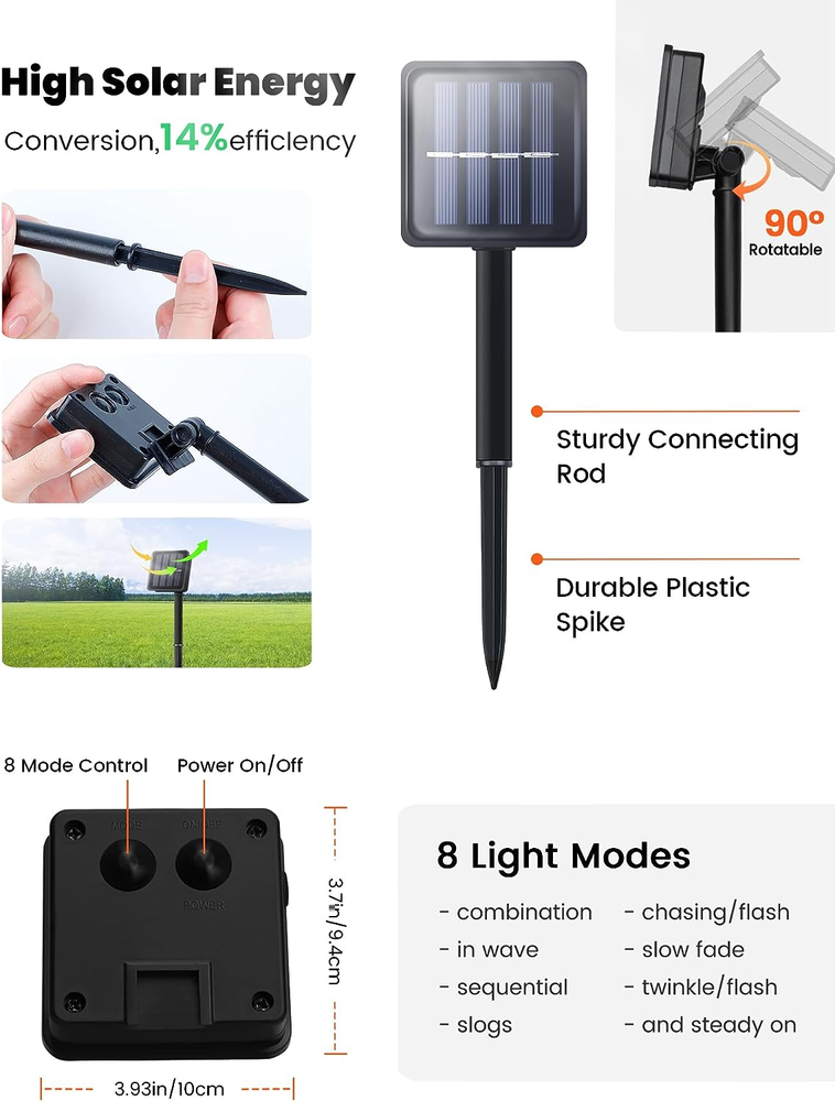 Store New Arrivals Add to Favorite View Feedback Contact 2 Pack Orange Solar Fairy Lights Outdoor,Each 33Ft 100 LED Solar Powered Halloween String Lights,Waterproof Copper Wire Twinkle Light for Thanksgiving Christmas Trees Party Yard Decor Description Item model number 5012638 Light Source Type LED Style Modern Number of Items 2 Power Source Solar Powered Number of Light Sources 1 Control Method Touch Theme Christmas Batteries Included? Yes Controller Type Button Control Batteries Required? Yes Material Copper Seasons autumn, winter Form Factor Fairy Lights Package Dimensions 5.16 x 3.58 x 3.43 inches Included Components 2 x 100L Solar Fairy Lights Outdoor Waterproof, 2 x Solar Panel Indoor/Outdoor Usage Outdoor Bulb Base GX6.35 Light Color Orange Water Resistance Level Waterproof Item Weight 9.1 ounces Occasion Christmas Special Features Automatic On-Off, Blinking, Motion Sensor Special Feature Automatic On-Off, Blinking, Motion Sensor Part Number 5012638 Color Orange,2pcs Wattage 5 watts Global Trade Identification Number 00762917992488 đăBright Solar Powered Halloween Lightsă:Get 2 in 1 package! BEEWIN 2 Pack solar string lights outdoor waterproof,each has 100 super bright LED bulbs on 33ft high quality copper wire,with steady 360 degree viewing angle they illuminate in every direction.Twinkle lights glow a orange lights,which are so brilliant and adding some spooky ambiance.Ideal for decorating Fall,Christmas,Halloween and Thanksgiving etc. đăOrange Solar Outdoor Lights with 8 Modesă:Auto on at dusk, auto off by day.Solar fairy lights have 8 MODES for you to choose:combination,in wave,sequential,slo glo,chasing/flash,slow fade,twinkle/flash,and steady on.You can switch the lighting modes to decor different holidays,wedding,anniversaries. đăwith Safety,Weather Resistantă:No heat,no radiation,low consumption,high safety.Both the fairy lights and the solar panel are designed with IP65 Waterproof.No worry to use our solar powered outdoor lights in the heavy rain and snow,excellent decoration choice for indoor & outdoor. đăEasy to Shape,Perfect for DIYă:High flexible copper wire could be molded into any shape like heart shape or pentacle,and wrap the solar outdoor fairy lights around tree trunks or gazebos.Perfect as DIY decoration for party, gardens,patio, gate, yard,home and any places,giving you the freedom to create unique and personalized lighting arrangements.Also, they easy to storage and ready for next use. đăSteps for Usageă:Step 1-completely covering the solar panels. Step 2-Turn on the switch. Step 3-the light up. NOTE: Charging environment, direct sunlight, charge 1-2 hours - light up 2-4 hours, charge 4-8 hours - light up 6-12 hours. If there is no sunlight on a cloudy day,it will light up 1-2 hours or dim.If you have any reasons for not being satisfied,please . Product Description BEEWIN 2 Pack Orange Solar Halloween Lights 8 Variable Lighting Modes The solar orange lights outdoor fixture has 8 different lighting modes(combination,in wave,sequential,slo glo,chasing/flash,slow fade,twinkle/flash,and steady on),which can be adjusted through the "Mode" button on the back of the solar panel. Safety to Use Halloween solar lights do not overheat after several hours of use, are very durable, safe and reliable. Weatherproof All modules are IP65 waterproof,Halloween solar outdoor lights can be used on rainy, foggy or snowy days. Orange Halloween Lights Solar powered Halloween string lights are suitable for both indoor and outdoor use, the wires become invisible in the dark, leaving only bright fairy lights to create an eerie atmosphere for Halloween decorations. Bring a unique decorative charm for Halloween, Thanksgiving and Christmas! ABOUT US We offer the best prices around on high quality products. Our E-store includes media such as books, movies, music and games while offering electronics, toys, sporting apparel, clothing, tools, general home, garden items and more. SHIPPING We are always working hard to ensure your package arrives as soon as possible. Please understand that some factors like weather, high postal traffic, and the performance of shipping companies are outside of our control. We offer free shipping to the lower 48 states and ship within 2 business days of payment, usually sooner. We do not accept P.O. Boxes. Please provide a physical address. For shipping outside of the continental USA, we only use eBay's Global Shipping Program.The item is shipped to KY and then sent to the rest of the world. International customers are responsible for all duties and taxes. Continue to check out in order to calculate costs for shipping the item to your country. Messages regarding eBay's Global Shipping Program MUST be directed at eBay EXCLUSIVELY. RETURNS We offer a 30-Day Return Policy on items which you are not completely satisfied with. You have the option for a full-refund or an exchange of the item. No returns are available on items shipped outside of the USA. PAYMENT We accept PayPal. CONTACT US This page content is yet to come Please ad us to your favorite seller and visit again later Thank You CUSTOMER SATISFACTION We try our very best to make sure every customer is completely satisfied. If there's a problem, message us! We're happy to help. WE ACCEPT Copyright © 2021 AutoDS. | All Rights Reserved