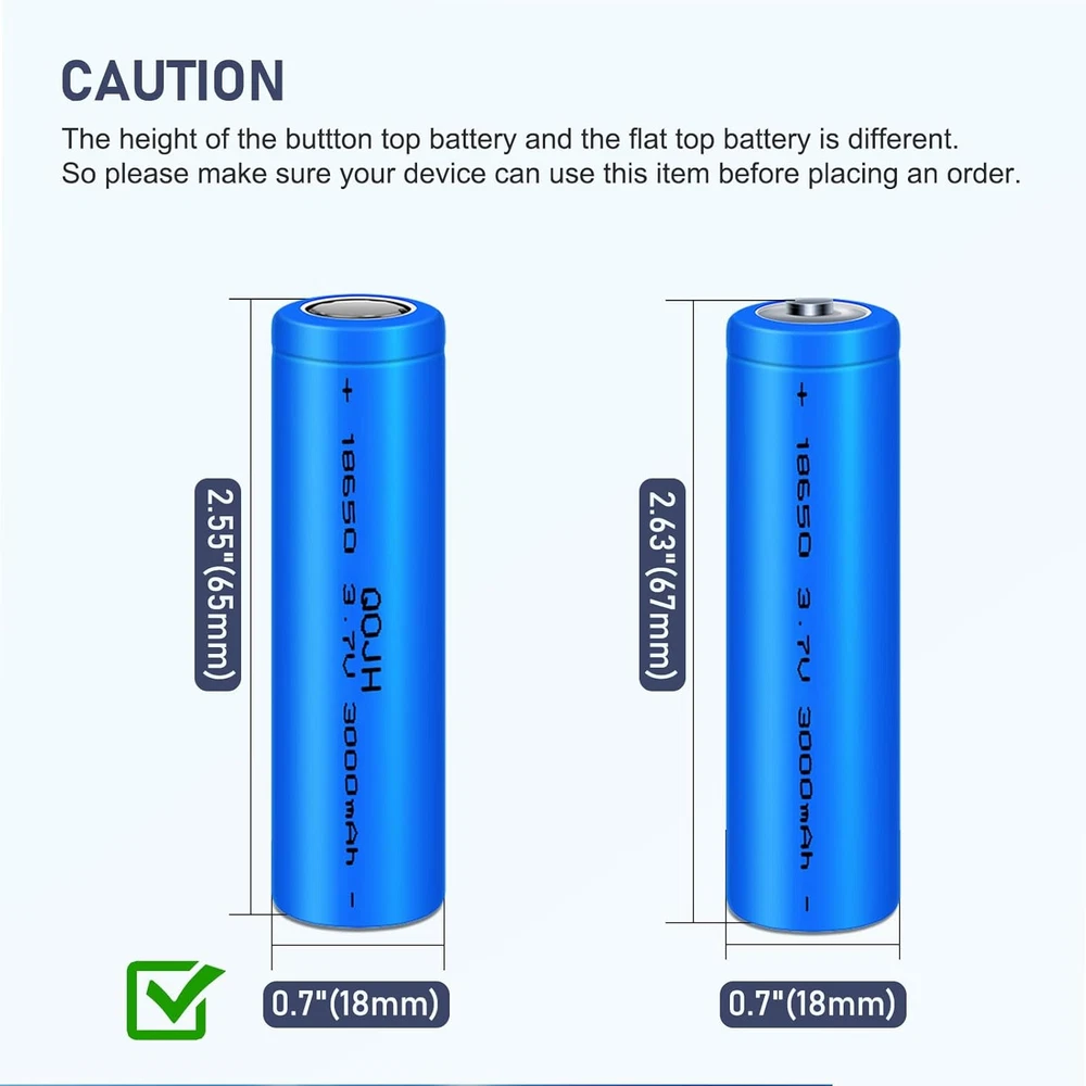 Store New Arrivals Add to Favorite View Feedback Contact 2 Pack 3.7 Volt 18650 Rechargeable Battery, 3000Mah Battery Flat Top Lithium Battery for Flashlight, Headlamp Description Reusability Rechargeable Unit Count 2.0 Count Battery Cell Type Lithium Ion Battery Capacity 3000 Milliamp Hours Amperage 3.7 Amps Battery Cell Composition Lithium Ion Battery Weight 0.1 Pounds Item Weight 1.6 ounces Voltage 3.7 Volts (AC) Model Name 18650 Recommended Uses For Product Indoor/Outdoor Number of Batteries 2 Lithium Ion batteries required. (included) 【Wide Compatibility and Rechargeable】3000mAh high capacity 18650 rechargeable battery can be widely used for LED flashlights, solar lights, racing, game controller, emergency lights, portable devices, headlamps, toys, remote controls, doorbells and other electronic devices. 【Product Parameters】This 18650 battery 3.7V standard voltage 3000mAh high capacity, Size:2.55*0.7inch(65 * 18mm) .it's a rechargeable battery FLAT TOP, Please confirm whether your device is suitable before purchasing. 【Pre-Charged】Each 3.7v lithium ion battery is ready to use and It can be recharged over 2000 times and keep 60% power after non-use for 2 years. 【Product Quality】Low discharge multiplier, no memory effect. 3.7 volt rechargeable battery are tested under strict quality control standards,safe and reliable use.Premium Li-ion Cells For Longer Battery Life . 【Quality Service】1 month return and exchange, if you have any questions about ours 3.7v battery, please feel free to contact us, we will provide you with professional solutions and satisfactory services as soon as possible. Product Description ABOUT US We offer the best prices around on high quality products. Our E-store includes media such as books, movies, music and games while offering electronics, toys, sporting apparel, clothing, tools, general home, garden items and more. SHIPPING We are always working hard to ensure your package arrives as soon as possible. Please understand that some factors like weather, high postal traffic, and the performance of shipping companies are outside of our control. We offer free shipping to the lower 48 states and ship within 2 business days of payment, usually sooner. We do not accept P.O. Boxes. Please provide a physical address. RETURNS We offer a 30-Day Return Policy on items which you are not completely satisfied with. You have the option for a full-refund or an exchange of the item. No returns are available on items shipped outside of the USA. PAYMENT We accept PayPal. CONTACT US This page content is yet to come Please ad us to your favorite seller and visit again later Thank You CUSTOMER SATISFACTION We try our very best to make sure every customer is completely satisfied. If there's a problem, message us! We're happy to help.