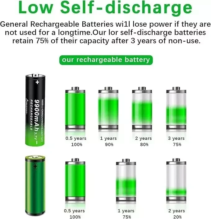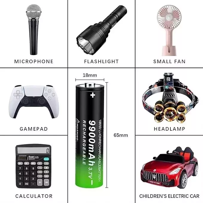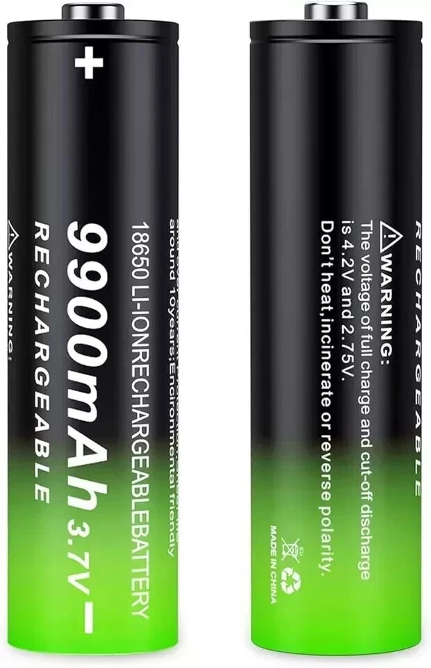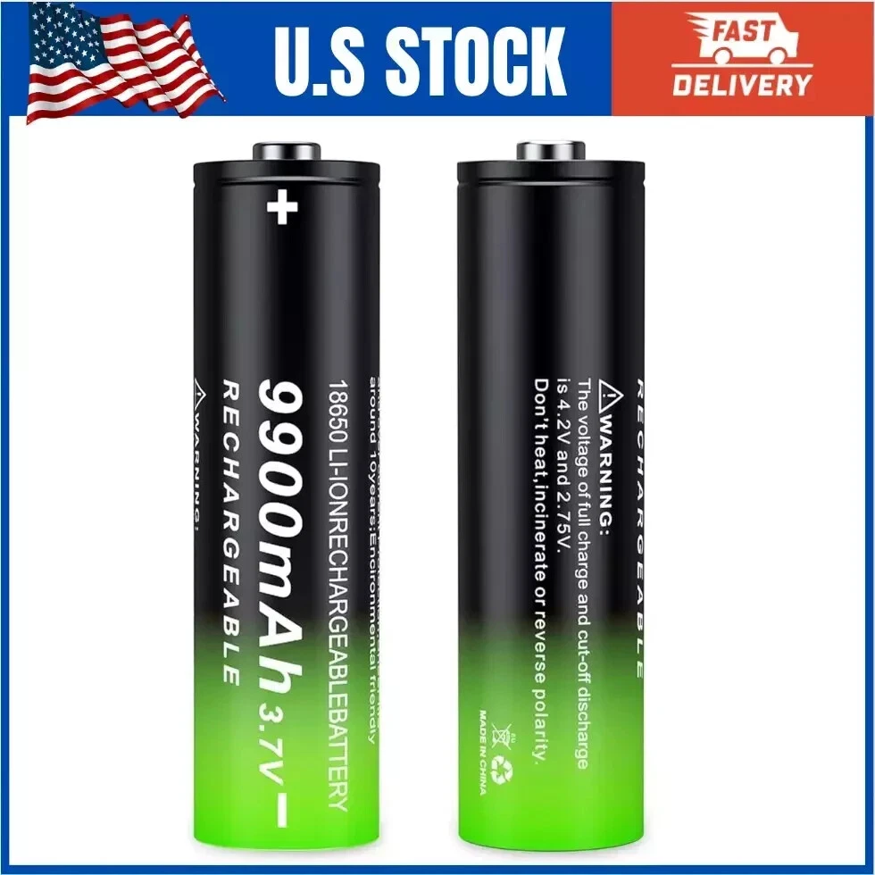 2 Pack 3.7 Volt 18650 Rechargeable Battery 9900mAh Battery Button Top Li-ion