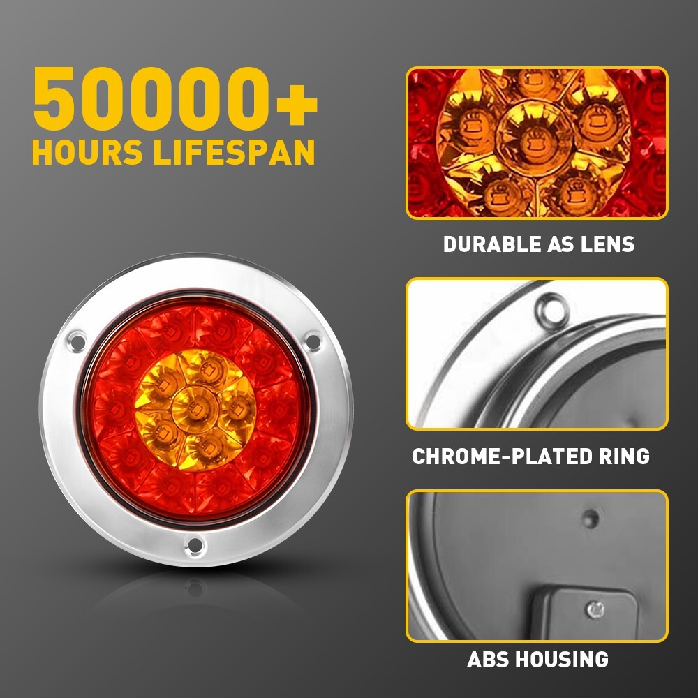 2 PCS Red/Amber Round tail 16LED Stop Brake Turn Signal Lights Truck Trailer Specification: Material: ABS & Rubber Voltage:12V-24V Waterproof grade:IP67 Service life: 50000H+ Light color: Red(10 leds),amber(6 leds) LED quantity: 16 LEDs per unit Universal for: Trucks, trailers, tractors, semi-trailer, Dump Truck, bus, boat, special vehicle, and etc. Features: 2 PCS 4 Inch Chrome Round Red 16LED Amber Turn LED Stop Brake Trailer Tail Light 2 PCS Red/Amber Round tail 16LED Stop Brake Turn Signal Lights Truck Trailer Specification: Material: ABS & Rubber Voltage:12V-24V Waterproof grade:IP67 Service life: 50000H+ Light color: Red(10 leds),amber(6 leds) LED quantity: 16 LEDs per unit Universal for: Trucks, trailers, tractors, semi-trailer, Dump Truck, bus, boat, special vehicle, and etc. Features: High brightness: Adopts 16 pieces of advanced LED lamp beads glowing brightly but not dazzlingly. 100% Brighter than halogen bulbs but more Energy-saving. Waterproof: The tail light is highly silicon sealed with an IP67 waterproof rating, which works even under extreme conditions such as rain and snow. Easy to install: Easy installation with direct replacement, other modifications are not required. Connection Black wire connects to negative. Red wire:Braking light (Red light with high brightness) Blue wire:Driving light(Red light with low brightness) Yellow wire: Turn signal light(Amber light) Functions Tail Light, Running Light, Stop Light, Turn Signal Light, etc. Wide application: Universal Fits All vehicles with 12V Power Supply such as car, truck, trailer, Semi Trailer, Semi Trucks, boat, flatbed, bus, lorry, van, caravan, camper, RV Jeep etc. Note: Please check the detail information carefully before purchasing. Your satisfaction is our utmost concern, please feel free to contact us for any questions and concerns. Store Service?? All our product share 2-years warrantys. If incorrect or defective item when you receive it, please feel free to contact us via eBay message. We will pay return shipping fee and arrange replacement ASAP. We are a professional shop. We devote ourselves to offering best product and good service.Any problem, complaint or suggestion happened during transaction, please contact us before leaving any feedback. We are committed to resolve all issues in a friendly and satisfactory manner. If you have any questions, please contact us, we will solve the problem for you within two working days Thank you! Item Specifics Brand : Unbranded Number of Bulbs : 2 Placement on Vehicle : Rear Lens Color : Smoke/Tinted Features : DOT-Certified, SAE-Certified Housing Color : Black Type : Tail Light Assembly Manufacturer Part Number : XPD-WDZ-49444 Packaging include : 2X Tail Lights Voltage : 12 V Fitment : Universal Universal Fitment : No Manufacturer Warranty : 2 Years Finish : Textured Payment (1) Instant PayPal payment is the preferred method of payment. (2) We also accept payment via PayPal, DebitCard, Visa, MasterCard, Discover. (3) We will only ship to the confirmed PayPal shipping address given with the payment. (4) If you want to ship to other address, please change your PayPal shipping address before you make payment. (5) To avoid initiating an unpaid item claim, please pay within 7 days. Shipping (1) We will ship your item(s) within 24 hours. (2) We ship this item to US usually via USPS first class mail. It usually takes 3-6 working days to deliver. Returns (1) We offer free return & money back guarantee. If you are not satisfied with your purchase for any reasons, you can return the item for refund or replacement/exchange. All returns must include the original packaging. (Please refer to our return policy for details.) (2) If you don't return goods within 60 days from date of purchase, your right to cancel will be revoked. Any items damaged because of incorrect installation will not be refunded. Please contact us for return or troubleshooting help prior to returning any products. (3) Unauthorized reselling of AUXITO products is strictly prohibited and we can't honor the warranty if purchasing from the unauthorized reseller. Contact Us [Our office hours are MONDAY - Saturday 9:00PM - 6:00PM PST, but we will response you once we get your message .There will be some delay on respons if you send message or E-Mail on Sundy.] (1).Negative feedback will not help resolve any problems you have, please contact us via eBay messages before leaving negative feedback, our customer service will make best effort to help you with the issues. (2).We maintain high standards of excellenceand strive for 100% customer satisfaction! Feedback is very important to us. We request that you contact us immediately BEFORE you give us neutral or negative feedback, so that we can satisfactorily address your concerns. FAQ Why swith to LED? LEDs not only give your vehicle a clean, modern look but, with proper use, will outlast any halogen bulb and HID bulb! Low energy draw, high lumen output, and instant on/off LED technology out shines stock bulbs in every way. Which bulbs are used in my vehicle? Check Sylvania automotive lamp replacemnt guide, you can select the year, make, and model of your vehicle, then select the application you want to replace or upgrade from stock. What does CAN Bus mean? CAN Bus means Controller Area Network Bus. This system monitors your vehicle and reports operating conditions. CAN Bus systems are commonly found in European vehicles such as BMW, Audi, Mercedes, Volkswagen, Porsche, and in many American vehicles. While most late model American vehicles have CAN Bus systems, it is always good to check with your vehicle dealer to see which system your vehicle has before purchasing electrical products. When do you need Warning Canceller? Some vehicles with cmplex internal computers(such as Audi,BMW,Jaguar,Mercedes,etc.) might report on-dash errors or flickering on the headlights. The warning canceller fixes the dashboard warning and flickering effect. Bulb Out Dashboard Error: On some vehic