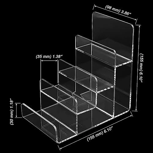 Return Policy Fast Delivery Trusted seller 2 Pack 4 Tier Acrylic Display Stand Clear Riser Display Shelf, Acrylic Wallet Display Stand Holder, Greeting Card Display Stand for Jewelry, Makeup, Sunglasses, Purse, 6.1x6.1x3.9Inch Product Description GREAT FOR DISPLAYING: Our 4-tier acrylic display stand offers ample space to showcase a wide range of items, including wallets, greeting cards, pops figures, makeup, sunglasses, purses, and jewelry. It's perfect for both personal and commercial use. CLEAR ACRYLIC DESIGN: Made from high-quality acrylic, this clear display stand provides a sleek and transparent look that allows your items to stand out. The clear design enhances visibility and adds a touch of elegance to any setting. SPACE-SAVING: The dimensions of our display stand are 6.1inch (L) x 3.9inch (W) x 6.1inch (H). Its compact size makes it ideal for various spaces, such as countertops, shelves, display cabinets, and more. Each tier is securely connected, providing a sturdy foundation for your items. EASY TO USE AND CLEAN: No assembly required, it is ready to use. The clear acrylic riser shelf features a 1.37" wide spacing for easy storage and cleaning. The smooth surface of the acrylic material makes it easy to wipe clean. VERSATILE USAGE: Whether you're showcg products in a retail store, exhibiting items at a trade show, or organizing your personal collection, this acrylic display holder is the perfect solution. It offers a stylish and organized way to display and store your valuable items. Shipping Returns Payment Shipping Shipping is FREE to all addresses other than APO/PO boxes in the lower 48 states. All our stock ships from US-based warehouses. Shipped via USPS or UPS (depending on location and package weight) Unless stated otherwise, all orders will ship within 24-72 hours of your payment being processed. Check our feedback to see the great reviews of FAST shipping we offer. Returns Seller does not accept returns Payment We currently accept payment via eBay managed payments only. Once payment is cleared, we will dispatch your shipment within 1-3 business days. Please refer to the "Shipping" tab for more information regarding shipping speed to your destination.