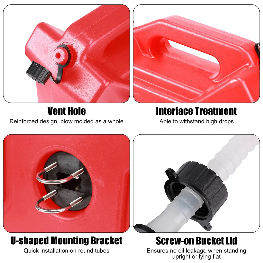 Features: Premium Material: Crafted from HDPE, the transfer boasts exceptional lightness, resistance to fading and oxidation, immense shock tolerance, and -static properties, making it a long-lasting, worry-free solution. Enhanced : Equipped with a robust -theft lock, safeguarding your fuel has never been easier. It offers peace of mind, knowing your fuel is securely locked, even when left unattended. Refueling Experience: The elongated nozzle promotes a distance during fueling, minimizing spills and hazards, complemented by a screw-fastened lid that guarantees no leaks whether the is upright or on its side. Installation: Equipped with a U-shaped mounting stand, installation onto round tubes is swift and effortless. Wide Application: Universally applicable to most , such as motorcycles, S 2 Pack 1.3 Gallon 5L Gas Fuel Tank Red Car Motorcycle w/Locking Mounting & Keys Features: Premium Material: Crafted from HDPE, the transfer boasts exceptional lightness, resistance to fading and oxidation, immense shock tolerance, and -static properties, making it a long-lasting, worry-free solution. Enhanced : Equipped with a robust -theft lock, safeguarding your fuel has never been easier. It offers peace of mind, knowing your fuel is securely locked, even when left unattended. Refueling Experience: The elongated nozzle promotes a distance during fueling, minimizing spills and hazards, complemented by a screw-fastened lid that guarantees no leaks whether the is upright or on its side. Installation: Equipped with a U-shaped mounting stand, installation onto round tubes is swift and effortless. Wide Application: Universally applicable to most , such as motorcycles, SUVs, ATVs, off-road motorbikes, , etc. Specifications: Item Name: Fuel Transfer Main Material: High Density Polyethylene Capacity: 1.3 Gallon / 5L Product Color: Red Product Size: 28*25*12cm Package List: K24057R 1 * Fuel 1 * Fuel Hose 2 * Keys 2 * Mounting Hooks 4 * Nuts 4 * Nut Washers 7 * Accessories Payment Shipping Return Contact us About us Payment 1.Paypal, Credit Card, G Pay etc, many payment way is accepted. 2.Please be sure your shipping address is correct before make a payment. Shipping 1.We are shipping from multiple warehouses (Houston, Texas/ Corona, California) , please note before placing an order 2.We will ship out the item within 1-3 business days after comfirming the payment, appreciate your patience. 3.If the items are broken on the way( we will check the orders clearly before we sent them ),please contact us in 3 days you received it. We will send you a new one or refund your payment. Return 1.We stand behind every buyer.Items can be returned for exchange or refund within 30 days. 2.Please contact us when you have any confusion of our item, we will solve the trouble for you as soon as possible. Contact us 1.This is professional Seller.We will reply your message within 24 hours. 2.Please contact us whenever you have any question about the item. We will deal with it as soon as possible. 3. If you are unhappy with the item or our service,please Contact Us before leave feedback,just give me a chance,thank you! About us 1. Unless specified otherwise, all our products are IN STOCK and are shipped from Local warehouse - Not Overseas! 2. We provide a 30 day Satisfaction Guarantee or your money back (provided items are in the same new and resaleable condition.) 3. We have a PayPal Verified Business Account, please buy with Confidence! 4. Every item will be tesrted before send.We know our products well and if we don't have the answers we will do our best to find them for you! 5. Our friendly team look forward to serving you! Your satisfaction is our No.1 Priority We will do our best to satisfacy you.