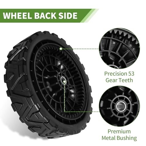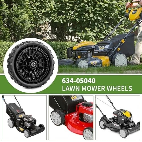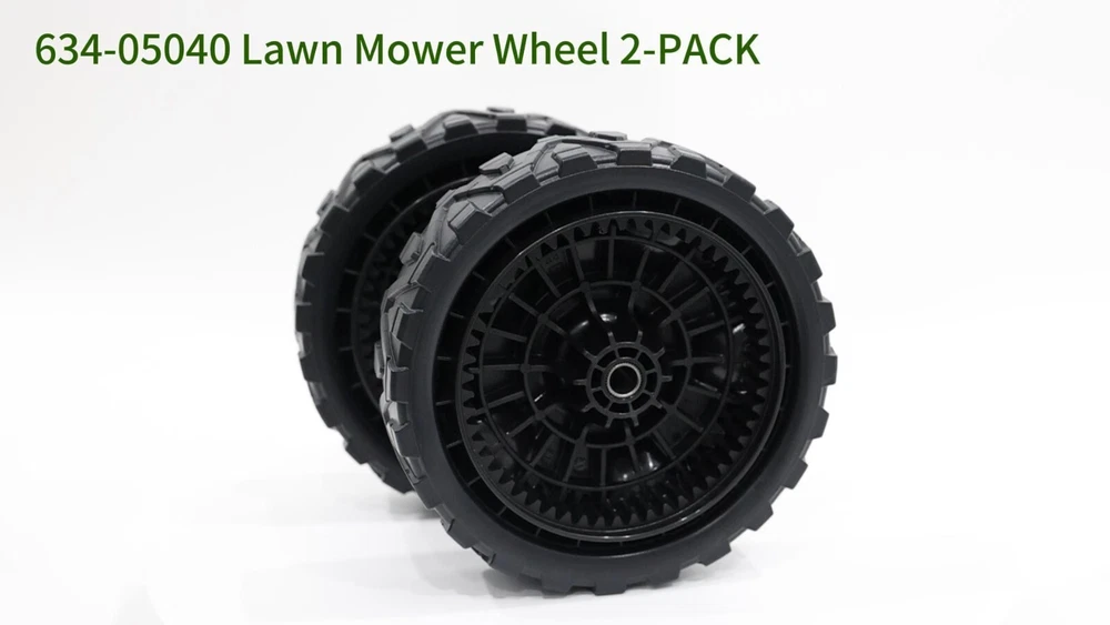 8-Inch Drive Wheels for Self-Propelled Push Mowers and Chipper Shredders Application: Enhance the mobility of your equipment with these 8-inch diameter drive wheels, ideal for 21" self-propelled push mowers and chipper shredders with a 24" vacuum width. Ensure a smoother movement for your machinery. Replace Part Number: Compatible with part number 634-05040. Verify with your original part number before ordering to ensure compatibility. Compatible Models: Craftsman: M210(2019), M215(2019), M230(2019), 247.374410, 247.377440 Cub Cadet: SC 300 HW, SC 300, SC 300 IP, SC 300 E, SC 700 Brute: 12A-A06M078, 12A-A06N778, 12A-A0A9778 Other Brands: Columbia, Yard Man, Black Max, MTD Gold, etc. Please refer to the description for additional compatible models. Easy to Install: Follow these simple steps to replace your mower wheels: Pry off the wheel cover using a flathead screwdriver. Loosen the mounting nut with a 9/16 inch socket and remove the old wheel. Slide the new wheel onto the axle, rethread and tighten the mounting nut. Align and snap the wheel cover back into place. Package Includes: Two Wheel Assemblies with a diameter of 8 inches each.