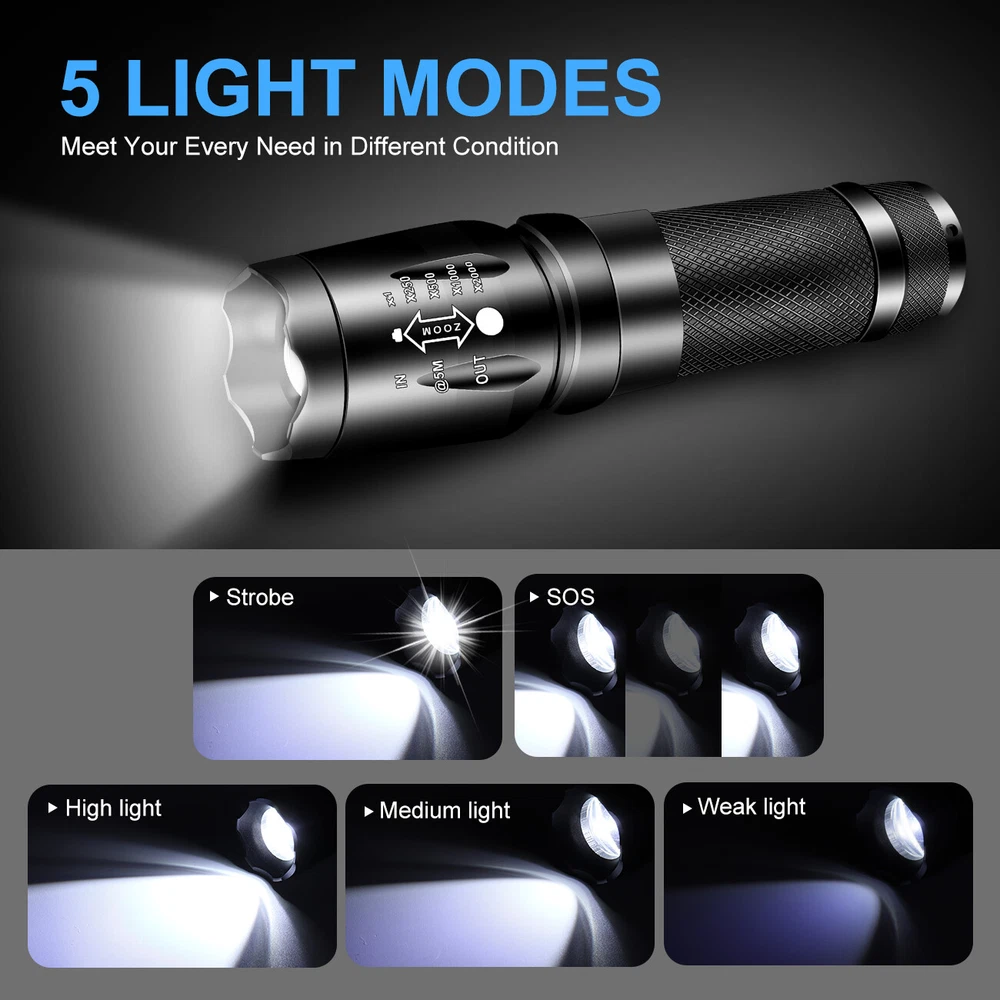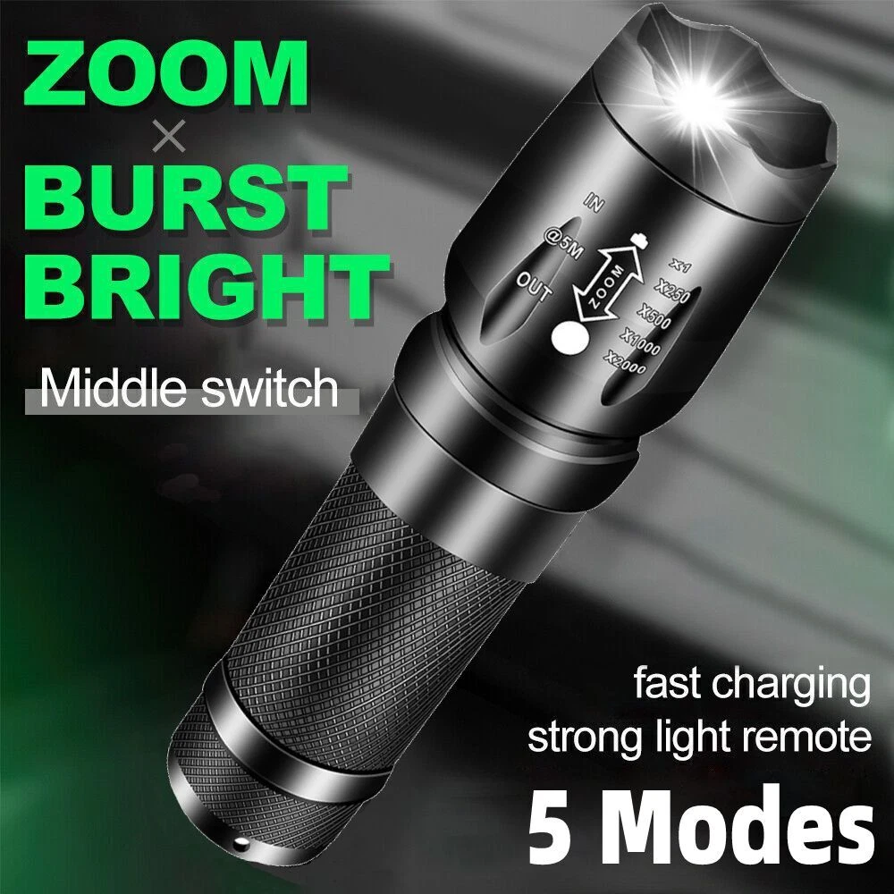2 Pack 990000LM Super Bright LED Flashlight Handheld AAA LED Torch Lamp Zoom
