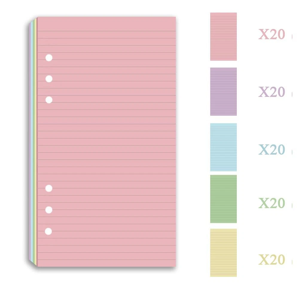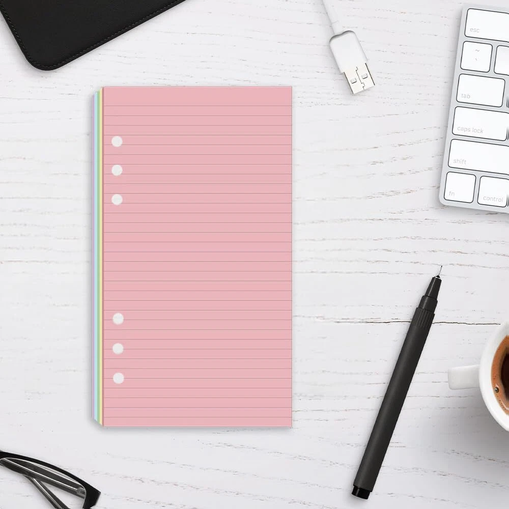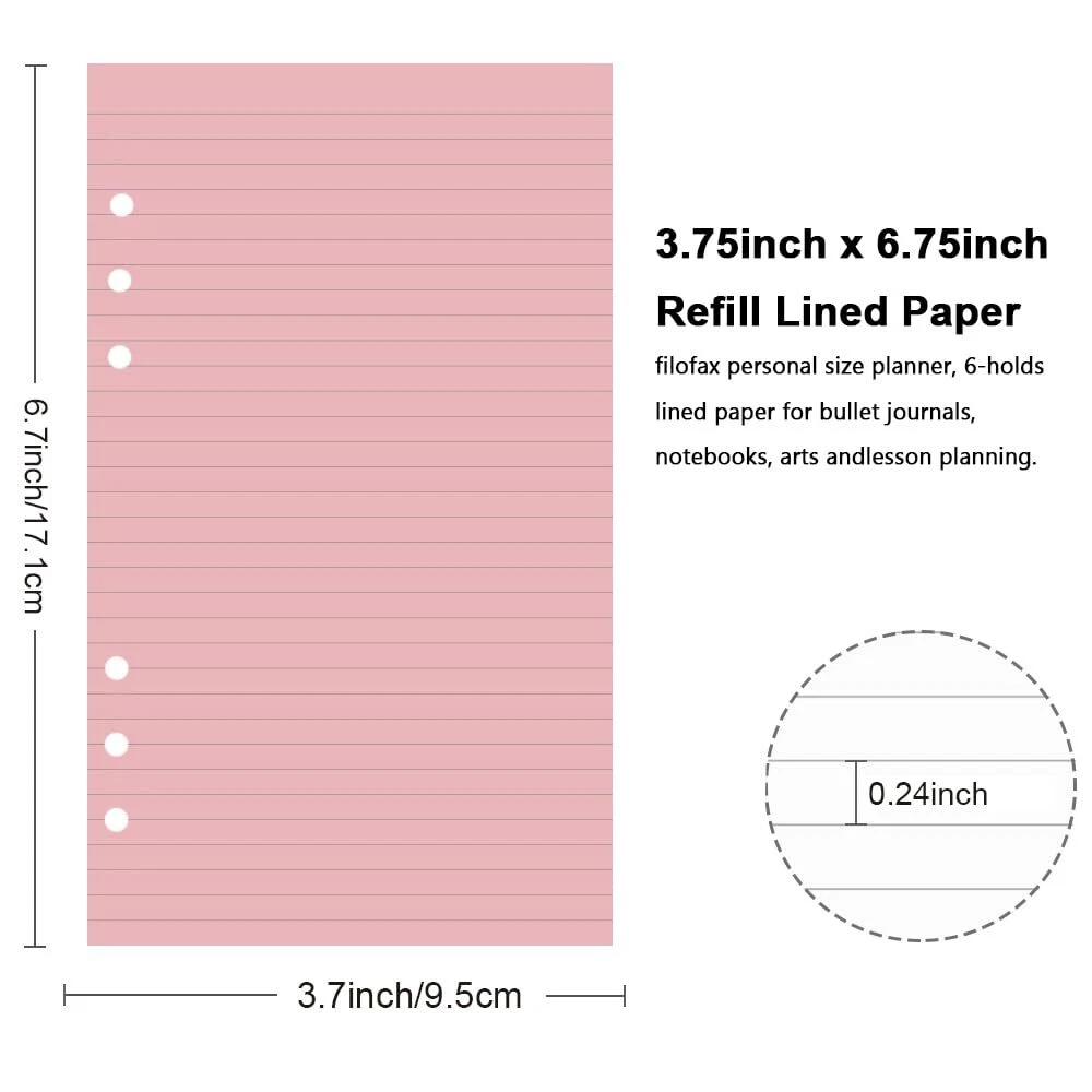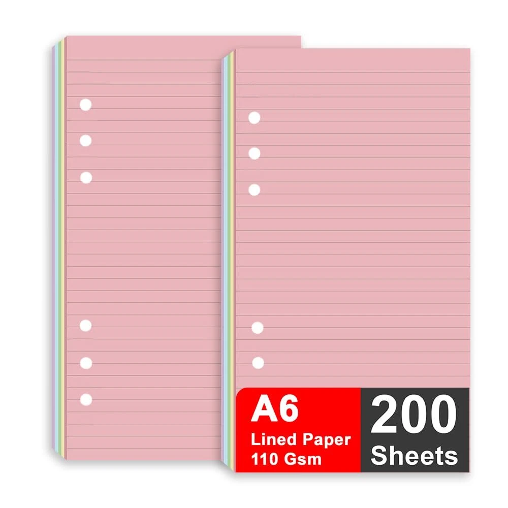 Loose leaf filler paper fits the popular 6 ring binder inserts binders/planners. A6 inserts: 6.73 x 3.72 Inch, 6 holes,refill paper for ring binder,Prepunched filler paper, no hole punch required. Planner refillable, double side clear black lines, each pack 200 sheets / 400 pages. A6 lined paper refill,Paper filler with 110gsm smooth paper for easy writing. Heavy-weight, acid-free paper that won't bleed through. A6 refillable journal,Paper refills responds well to fountain pen, gel pen, roller pen, ballpoint pen, highlighter, pencil and etc. OVERVIEW - Loose leaf filler paper fits the popular 6 ring binder inserts binders/planners. PAPER SIZE - A6 inserts: 6.73 x 3.72 Inch, 6 holes,refill paper for ring binder,Prepunched filler paper, no hole punch required PACKAGE INCLUDE - Planner refillable, double side clear black lines, each pack 200 sheets / 400 pages. PREMIUM PAPER - A6 lined paper refill,Paper filler with 110gsm smooth paper for easy writing. Heavy-weight, acid-free paper that won't bleed through. PEN TYPES FIT - A6 refillable journal,Paper refills responds well to fountain pen, gel pen, roller pen, ballpoint pen, highlighter, pencil and etc