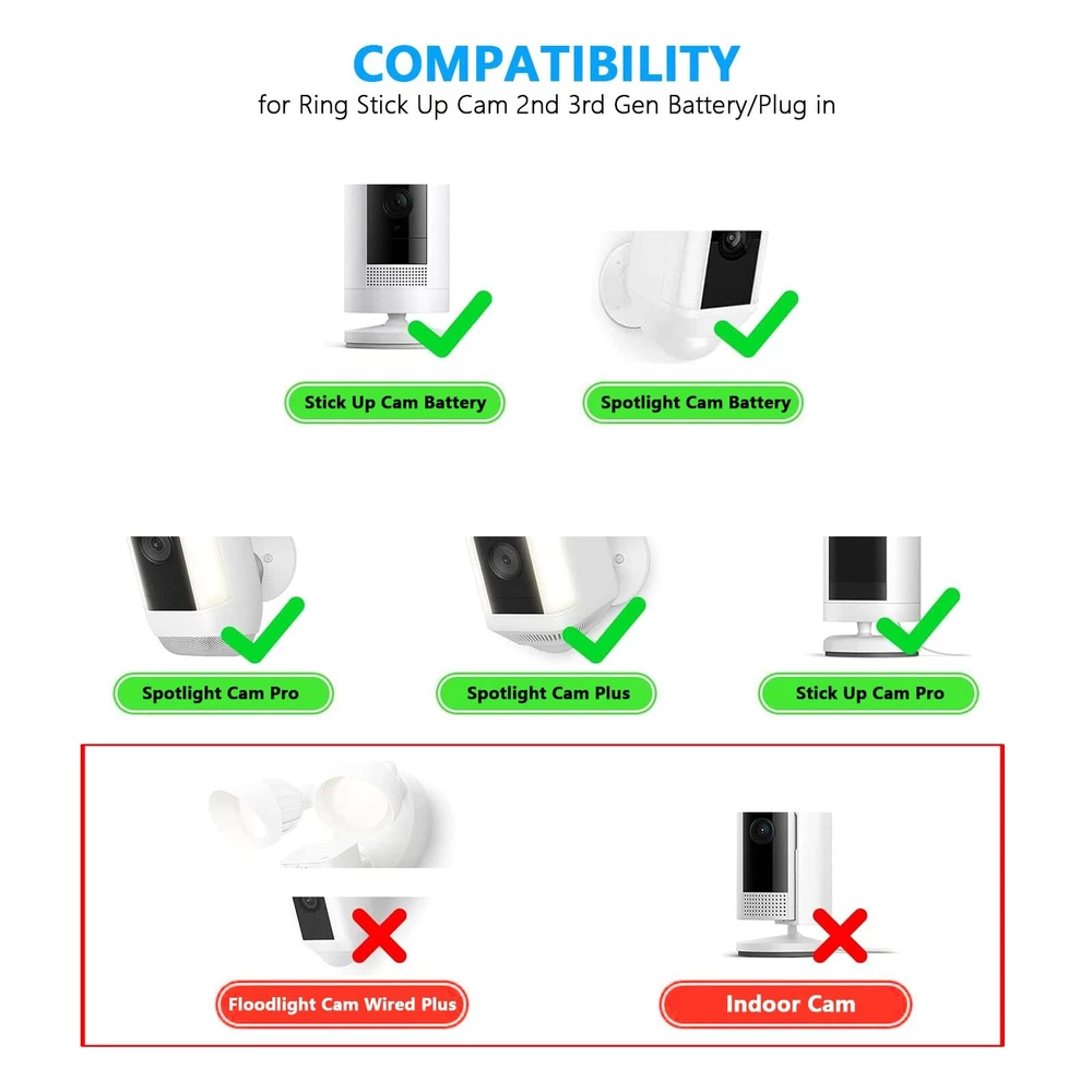 2 Pack Adapter Charger for Ring Stick Up Cam Battery/Plug-in 3rd Gen/2nd & Ring Pan Tilt Stick Up Camera,Spotlight Cam Ring Spotlight Cam Plus/Pro Indoor/Outdoor Weatherproof Charging Cable Power Cord 2 Pack Adapter Charger Compatible with following models Compatible for Stick Up Cam Battery/Plug-in 3rd Gen/2nd Gen & Pan Tilt Stick Up Camera. Compatible for Spotlight Cam, Spotlight Cam Plus/Spotlight Cam Pro Battery. 【PACKAGE CONTENT】 2 x wall charger and 2 x 6 ft long cable cord (non-OEM) (Support charging and data transmission) Input : 100-240V 50-60Hz Output : 10W ( Compatible with 5V 2A,5V 1.5A,5V 1A,5V 0.5A,5V 0.1A ) Warranty: 30 Days Money Back Guarantee. Reliable and Friendly Customer Service Response Within 24 Hours. 1. ⚠️⚠️Note: No indicator when charging; But you'll notice that the battery level on the APP increases after an hour. Note: When using the camera for the first time, if camera there is no power at all, please remove the battery and charge the battery. 2 . ✅ No Need to Change the Batteries 【compatibility 】2 Pack Adapter Charger Compatible with Stick Up Cam Battery (3rd Gen) & Stick Up Cam 2nd Gen & Spotlight Cam Battery Spotlight Cam Plus/Pro Indoor/Outdoor Cam. 2 Pack Adapter Charger. Note: You need to have batteries in the camera to use this charging adapter to power your camera. If you do not have batteries in the camera, the power adapter will not be able to power your camera。 4. No Constraint Charging And Use: Length: 1 x 6 FT USB Charging Cord & Data Cable for Camera. the cable has ample length, so you don't have to worry about finding a 'wall outlet' at a suitable distance. 5. Warranty: 30 Days Money Back Guarantee. Reliable and Friendly Customer Service Response Within 24 Hours. Shipping from the USA All of our products are shipped from the USA, ensuring quick delivery to your destination. Payment We offer the following payment methods: PayPal, credit card, bank transfer, and eBay's secure payment system. Free Shipping & Free Returns Shipping within the USA is FREE. Additionally, any return is absolutely free for you. Risk-Free Purchase You have the option to return an item within 30 days without any justification. We cover the return shipping costs! Fast Shipping We ship immediately upon receipt of payment. Generally, the package is delivered within 2-3 days in the USA. If it takes longer, we will contact you. Quality and Costs Made in Europe, USA, China No customs fees or additional charges Total satisfaction guarantee Invoice with declared VAT available upon request in .pdf format Feedback Your feedback is very important to us. After you pay for your purchase, you will automatically receive positive feedback from us.