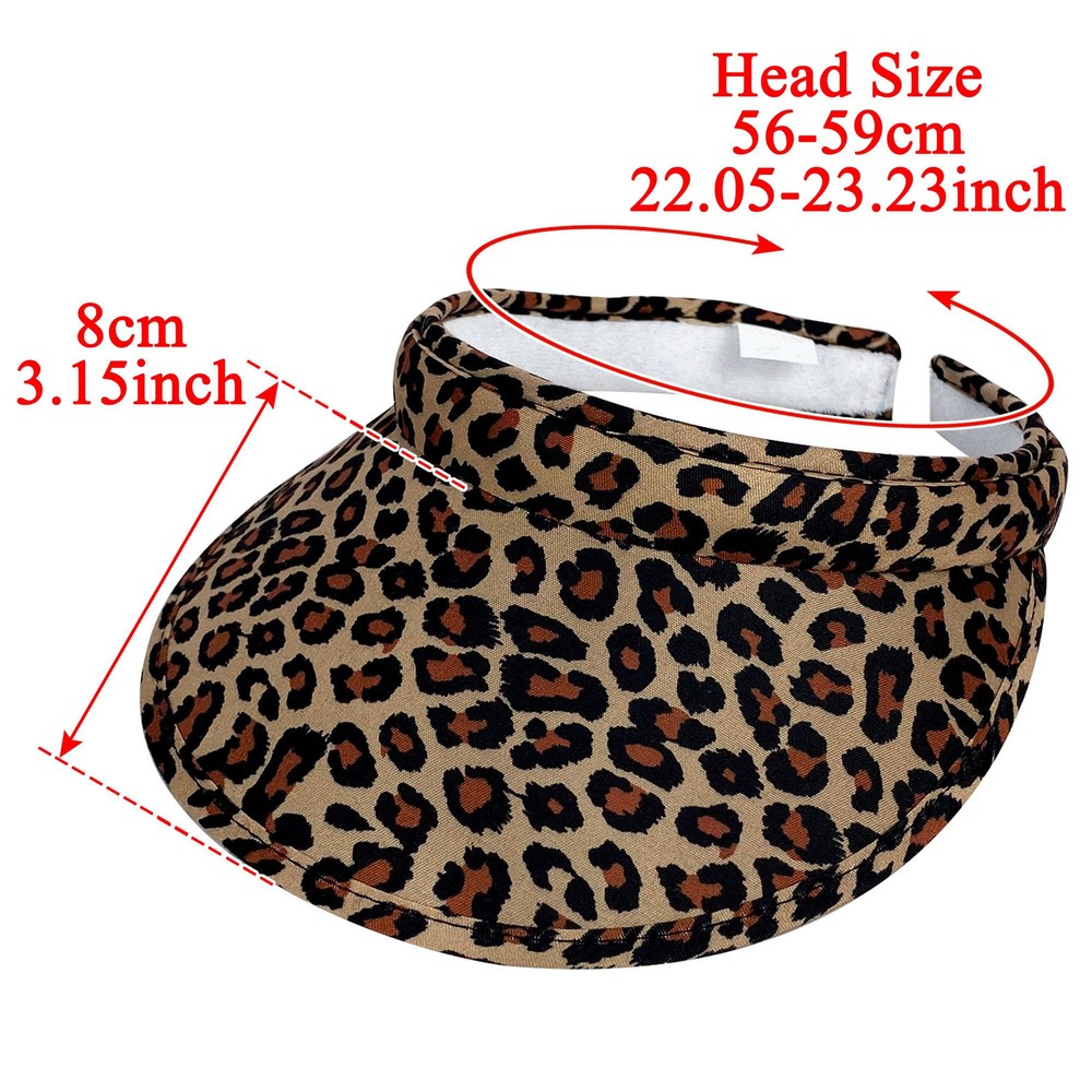 One Size Fits Most Head circumference : 21.25-22.83 inch. Wide Brim: 3.1 inch 2 PACK: There are 2 pack clip-on sun visor hats in the package. Multiple Colour:These visor hats for women have balck , white , blue , navy , khaki ,green, maroon, hot pink. These sport visor hats are comfortable, and if you don't want to take time to fix your hair, put one on and go! Wearing Perception:These open back visors for women men are comfortable fit, stylish look, retro appearance, light weight, adjustable design. Classic accessories:Whether you are in the gym, for golf and yard work outdoor activities or leisure and entertainment. Use fashionable sports cotton twill golf sun visor to enjoy and protect yourself on sunny days.