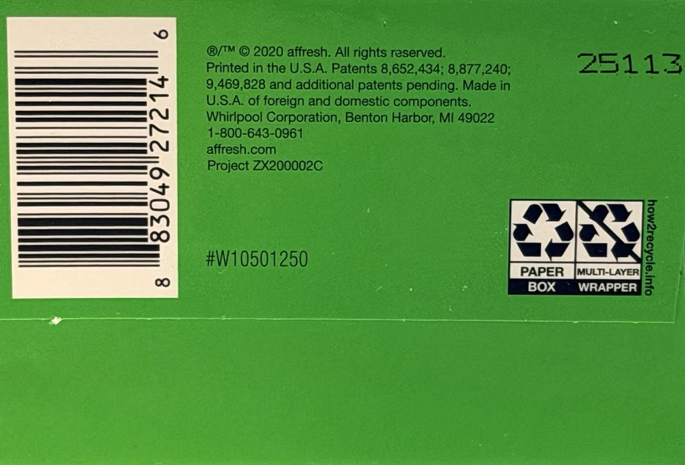 Brand Name: Affresh Type: Washing Machine Cleaner Brand: Affresh Specific Uses For Product: Washing Machine gtin13: 883049272146 Item Weight: 8.4 Oz Per Box Efficiency: High Efficiency Form: Tablet Country of Origin: United States UPC: 883049272146 Color: White For: Washing Machine Features: Eco Friendly, Non-Toxic Material Feature: Septic safe Scent: Citrus Model Info: W10501250 Item Form: Tablet Number in Pack: 2 Boxes Of 6 Tablets Each (12)