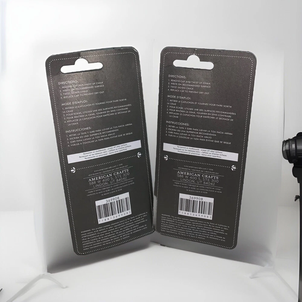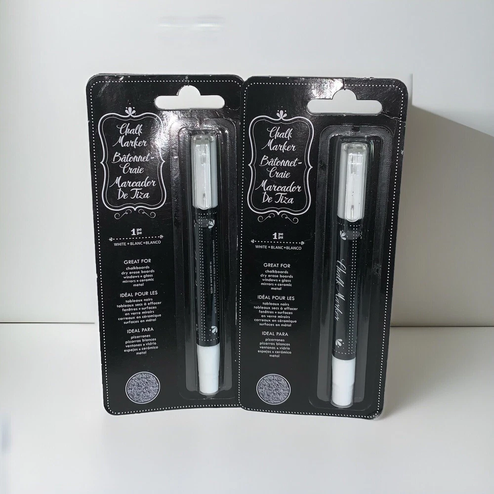This 2 pack set of American Crafts erasable chalk markers in white is perfect for any scrapbooking or paper craft project. These markers are made in the United States and are of high quality, ensuring that your projects will look their best. With these markers, you can easily add a touch of elegance or sophistication to your designs. They are perfect for use on a variety of surfaces, including paper, cardstock, and even wood. So why wait? Add these American Crafts erasable chalk markers to your collection today and take your crafting to the next level! *Permanent on chalkboards - erases off other surfaces* HAPPY BIDDING!!! 😊