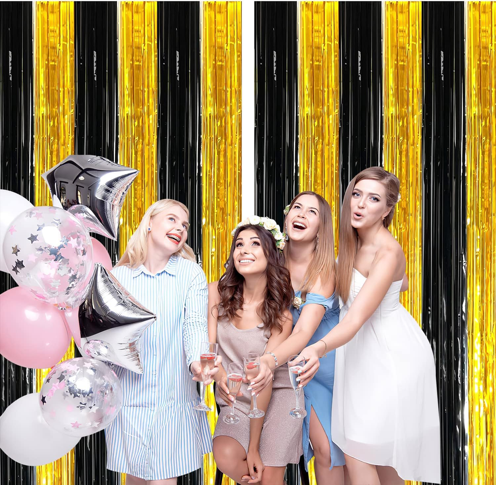 $ 8.683 Pack 3.3X8.2 Feet Silver Foil Fringe Backdrop Curtains, Tinsel Streamers Birth