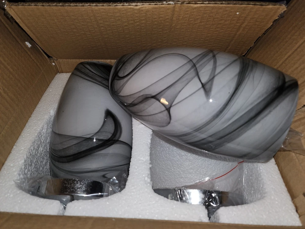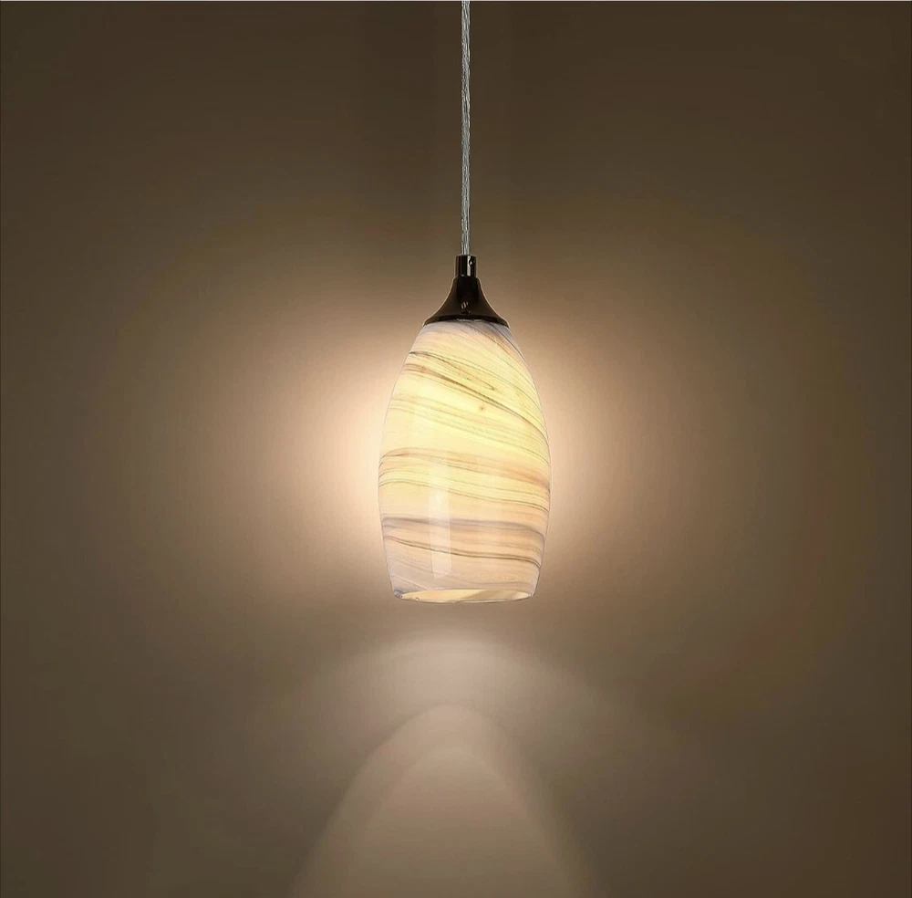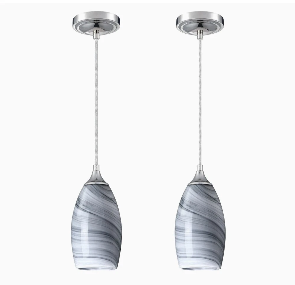 2 Pack Black/White Handcrafted Art Glass Hanging Lights with Chrome Finish, E26