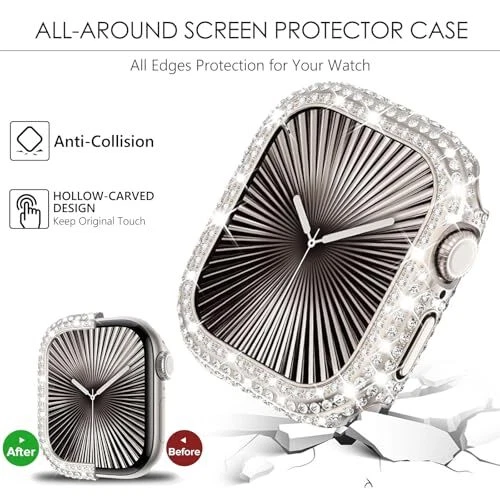 Menu 1. We require immediate payment. 2. We currently accept payment via eBay managed payments only. 3. Once payment is cleared, we will dispatch your shipment within 1-3 business days. Please refer to the "Shipping" tab for more information regarding shipping speed to your destination. 2 Pack Bling Case for Apple Watch Series 10 46mm Bumper Case, Full Diamond Rhinestone Protective Face Cover Apple Watch 10 46 mm Shockproof Protector Crystal Women Dressy iWatch Starlight/Clear Product description [Compatible Models] bling diamonds apple watch case ONLY compatible with Apple Watch Series 10 46mm, 2024 NEW released. Please check the back of watch to ensure you order the correct size. [Apple Watch Bumper Case ONLY, NOT includes watch band and screen protector] [Full Sparkling] The bling Apple Watch series 10 46mm case cover features a 6 rows of sparkling rhinestones, set with approximately 300 sparkling rhinestones, Shines brightly and sparkly in the light, change sporty apple watch 10 into a new stylish look, sparkle you all angle with shinning look in all occasion. You will get many compliments. [Rhinestones Never Come Off] glitter apple watch 10 46mm face cover with advanced adhesive process, the crystals are permanently glued on the case and will never come off. Fashionable & durable, perfect for work and dressy occasions, also a best gift for your friends, couples or families. Like Birthday, Valentine’s day, Thanksgiving Day, Mother's Day, Christmas, Wedding Anniversary etc. [Easy to Put On & Off with Effective Protection] Durable hard PC frame Apple Watch 10 bumper case 46mm protect iwatch from scratches, drops and bumps. Precise corner cutting technology allows access to all controls, buttons, sensors precisely. Easy to install and take off with snap-on design. Charging directly without removing iWatch series 10 case and band. [12 months warranty] We offer 12 months warranty for FULL-REFUND or FREE REPLACEMENT. If defective or any quality problems., please CONTACT US via the steps "Login " → "Your Account" → "Your orders" → "Ask Product Question". We'll offer 24-hour after-sales service and provide you with a 100% satisfied solution. PLEASE MESSAGE US IF YOU HAVE ANY OTHER QUESTIONS, AND MANY THANKS FOR READING ALL OF THIS. Copyright ©#. All Rights Reserved.