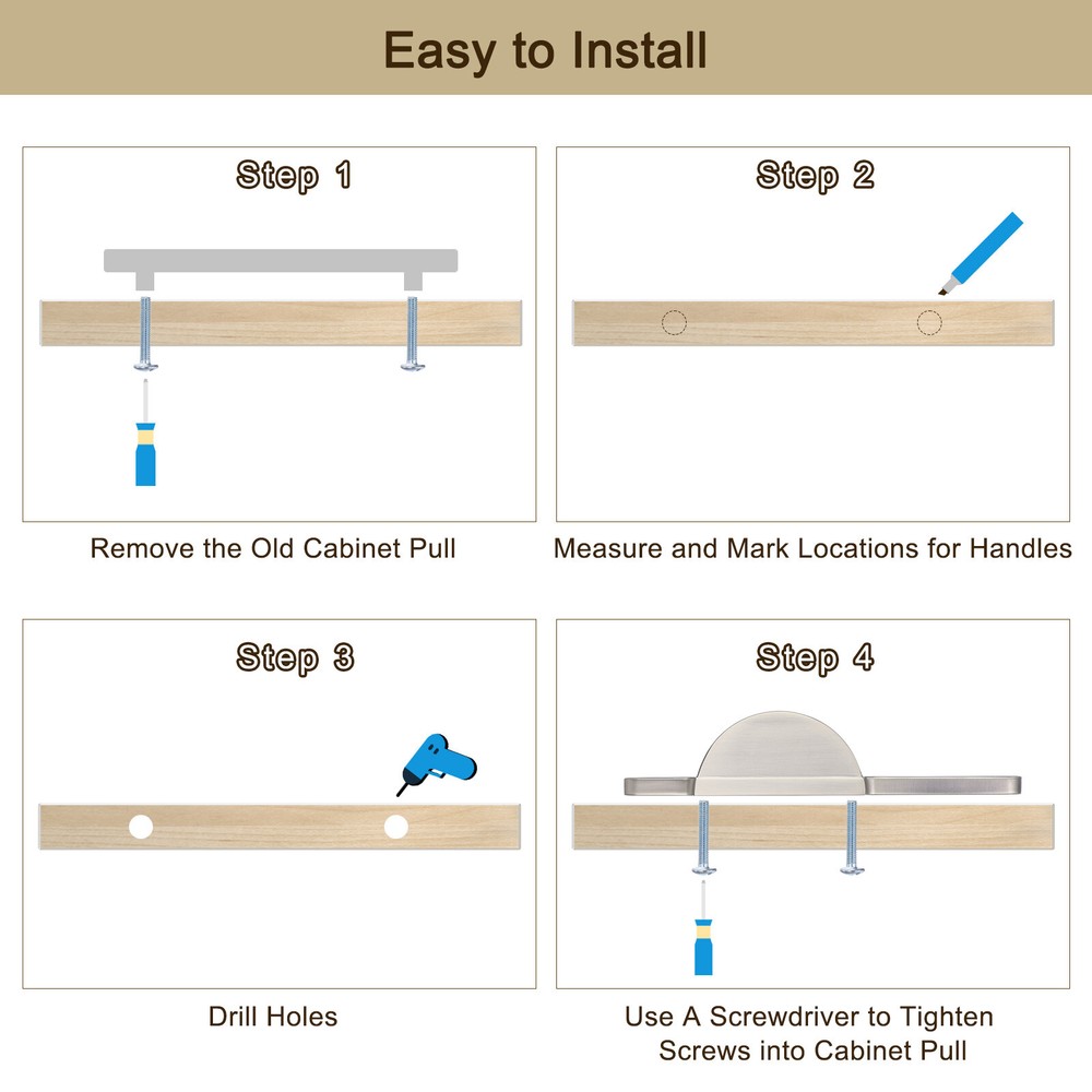 Document Advantage:The cabinet drawers handles are made of aluminum alloy and have good rust and corrosion resistance.The surface of these handles is matte black finish, has good wear resistance, and will not fade for a long time .Edge design, no-sharp and rounded edges, soft touch. Semi-circular design for easy operation and comfortable grip.Each handle has matching long screws and short screws. Make sure to fit cabinets of different thicknesses.This cabinet handle is suitable for cabinet, closet, cupboard, drawer, dresser, door, wardrobe. Specification:Material: Aluminum alloyColor: SilverSize: 19 cm x 1 cm x 4 cm/7.5"L x 0.4"W x 1.6"HPackage Included: 2 pcs x Kitchen Cabinet HandlesNote: Manual measurement, please allow slight errors in size. The color may have a slight difference due to different screen displays. 2 Pack Brushed Silver Cabinet Pulls Semicircle Cabinet Handles 2-1/2 Inch (64mm) Advantage : The cabinet drawers handles are made of aluminum alloy and have good rust and corrosion resistance. The surface of these handles is matte black finish, has good wear resistance, and will not fade for a long time . Edge design, no-sharp and rounded edges, soft touch. Semi-circular design for easy operation and comfortable grip. Each handle has matching long screws and short screws. Make sure to fit cabinets of different thicknesses. This cabinet handle is suitable for cabinet, closet, cupboard, drawer, dresser, door, wardrobe. Specification : Material: Aluminum alloy Color: Silver Size: 19 cm x 1 cm x 4 cm/7.5"L x 0.4"W x 1.6"H Package Included: 2 pcs x Kitchen Cabinet Handles Note: Manual measurement, please allow slight errors in size. The color may have a slight difference due to different screen displays. Hot Item Payment 1.We accept eBay payment . 2.Payment must be received within 7 business days of auction closing. Shipping 1.We ship to your eBay or Paypal address. Please make sure your eBay and Paypal address is correct before you pay. 2.Items will be shipped within 1-3 business day when we received payment. 3.Delivery time depends on destination and other factors. Description Policy 2 Pack Brushed Silver Cabinet Pulls Semicircle Cabinet Handles 2-1/2 Inch (64mm) Advantage : The cabinet drawers handles are made of aluminum alloy and have good rust and corrosion resistance. The surface of these handles is matte black finish, has good wear resistance, and will not fade for a long time . Edge design, no-sharp and rounded edges, soft touch. Semi-circular design for easy operation and comfortable grip. Each handle has matching long screws and short screws. Make sure to fit cabinets of different thicknesses. This cabinet handle is suitable for cabinet, closet, cupboard, drawer, dresser, door, wardrobe. Specification : Material: Aluminum alloy Color: Silver Size: 19 cm x 1 cm x 4 cm/7.5"L x 0.4"W x 1.6"H Package Included: 2 pcs x Kitchen Cabinet Handles Note: Manual measurement, please allow slight errors in size. The color may have a slight difference due to different screen displays. Hot Item Payment 1.We accept eBay payment . 2.Payment must be received within 7 business days of auction closing. Shipping 1.We ship to your eBay or Paypal address. Please make sure your eBay and Paypal address is correct before you pay. 2.Items will be shipped within 1-3 business day when we received payment. 3.Delivery time depends on destination and other factors.