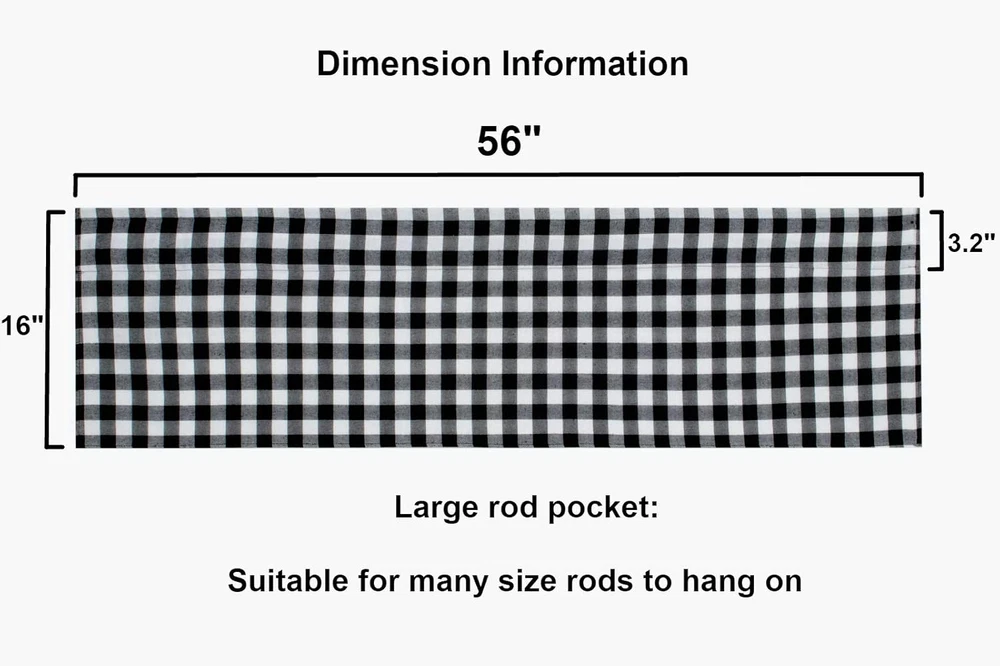 Store New Arrivals Add to Favorite View Feedback 2 Pack Buffalo Check Plaid Window Valances White and Black Farmhouse Design Window Treatment Decor Curtains Rod Pocket Valances for Kitchen/Living Room 16" X 56" Description Style Modern Weave Type Plain Number of Items 2 Pattern Check,Plaid Package Weight 0.26 Kilograms Theme Farmhouse,Plaid Opacity Light-filtering Unit Count 1.0 Count Room Type Nursery, Dining Room Product Dimensions 16"L x 56"W Brand WOSIBO Material Cotton Top Style Rod Pocket Model Name 2 Seasons All Season Specific Uses For Product Decorative Manufacturer WOSIBO Closure Type Rod pocket Curtain Form Window Tier Curtain Water Resistance Level Not Water Resistant Item Weight 9.1 ounces Compatible with Rod Size 1.6 Inches Special Feature Fade Resistant, Washable Hanging Method Rod Pocket Color White and Black Recommended Uses For Product Indoor Fabric Type 100% Cotton Product Care Instructions Machine Wash Size 56"W x 16"L (Pack of 2) PERFECT SIZE WITH LARGE ROD POCKET: The package includes 2 window curtain valances. Measures: 56"W x 16"L, fits standard windows 24” – 48”. With 3.2 inch rod pocket which fits up to 1.6 inch diameter basic or decorative curtain rods. Easy to hang on the check curtains VANTAGE AND CLASSIC BUFFALO CHECK DESIGN: Classic buffalo check design works well with many decorating styles like French country style, modern farmhouse style etc., add a bright color in your kitchen, living room or dining room HIGH QUALITY AND MACHINE WASHABLE: It is in good quality, soft, durable and bright color. The color will not fade after long-time use. And machine washable with cold water on gentle cycle. Ironing is also acceptable EASY TO USE: The buffalo check window valances are very easy to install and maintain, just hang up, and you can enjoy your decorative windows. 2 pack window valances, convenient to change and wash Multi OCCASIONS: The 2 pack buffalo check window valances not only match the kitchen room but also perfect for living room, dining room or nursery. Provides an easy way to add character to your windows or rooms 2 Pack Buffalo Check Plaid Cotton Window Valances PERFECT SIZE WITH LARGE ROD POCKET: The package includes 2 window curtain valances Measures: 56"W x 16"L, fits standard windows 24” – 48” 3.2 inch rod pocket which fits up to 1.6 inch diameter rods VANTAGE AND CLASSIC BUFFALO CHECK DESIGN: Classic buffalo check design works well with many decorating styles like French country style, modern farmhouse style etc. EASY TO USE AND MACHINE WASHABLE Machine washable and easy to install and maintain 2 pack window valances, convenient to change and wash ABOUT US We offer the best prices around on high quality products. Our E-store includes media such as books, movies, music and games while offering electronics, toys, sporting apparel, clothing, tools, general home, garden items and more. SHIPPING We are always working hard to ensure your package arrives as soon as possible. Please understand that some factors like weather, high postal traffic, and the performance of shipping companies are outside of our control. We offer free shipping to the lower 48 states and ship within 2 business days of payment, usually sooner. We do not accept P.O. Boxes. Please provide a physical address. RETURNS We offer a 30-Day Return Policy on items which you are not completely satisfied with. You have the option for a full-refund or an exchange of the item. No returns are available on items shipped outside of the USA. PAYMENT We accept PayPal. CONTACT US This page content is yet to come Please ad us to your favorite seller and visit again later Thank You