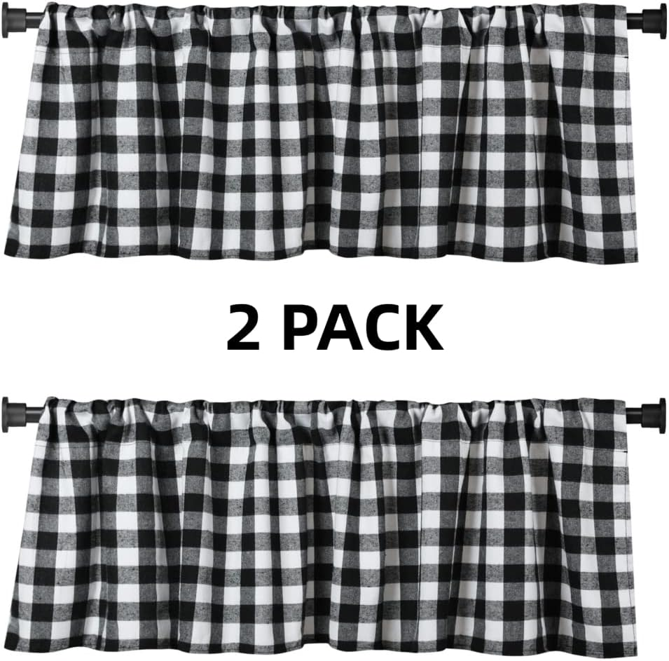 2 Pack Buffalo Check Plaid Window Valances White and Black Farmhouse Design Wind
