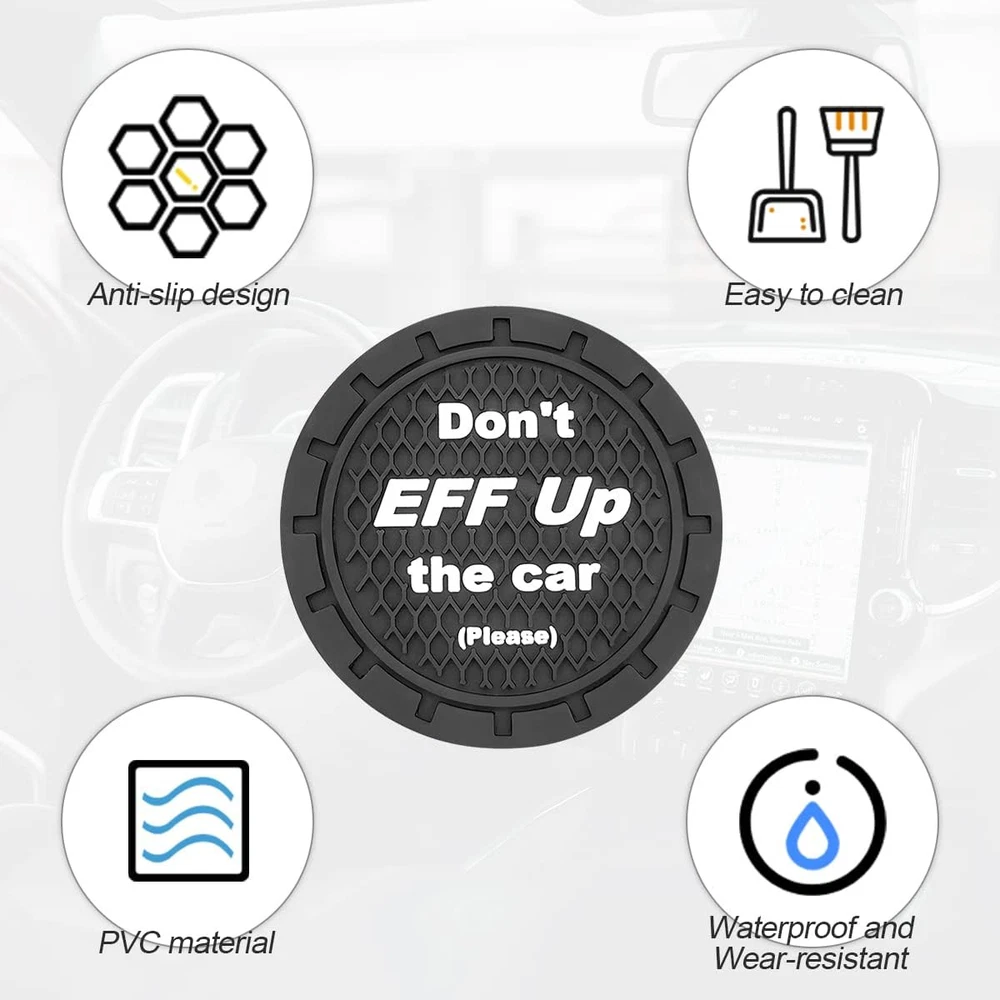2 Pack Car Cup Holder Coasters, 2.75 Inch Non-Slip PVC 2PCS, A Black/2pcs