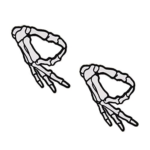2 Pack Circle Game Skeleton Hand Embroidered Iron On Patches Hat Pins DIY