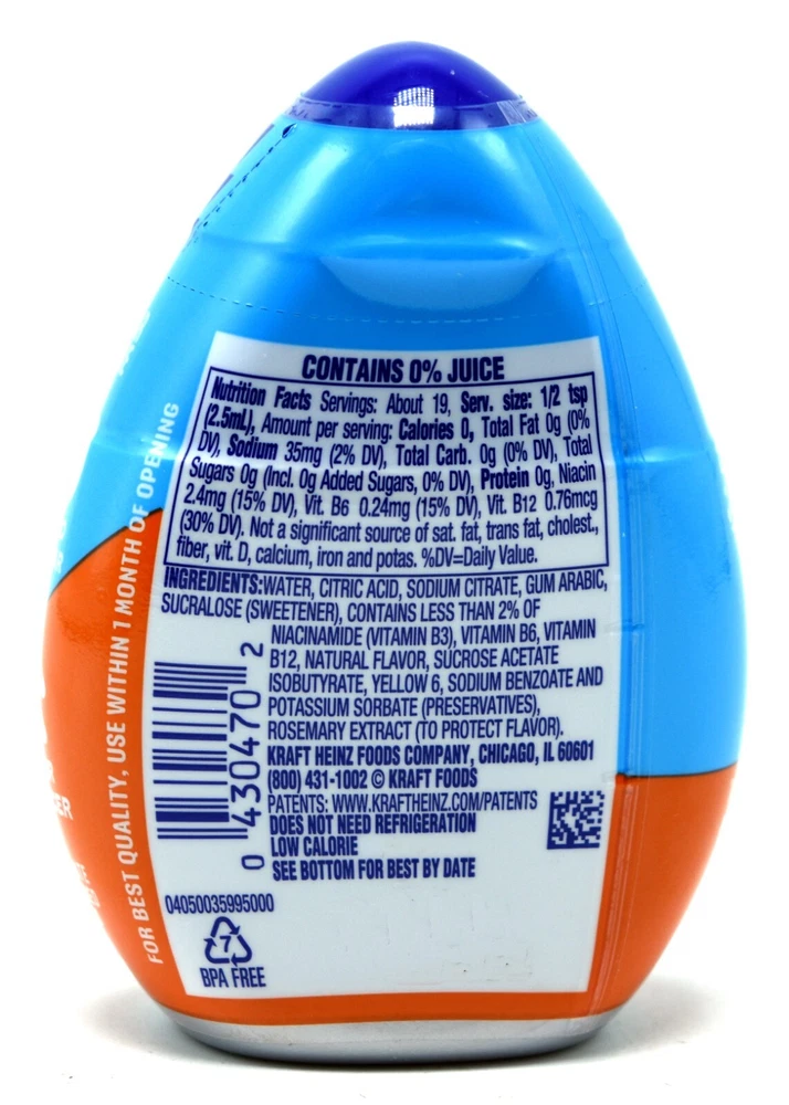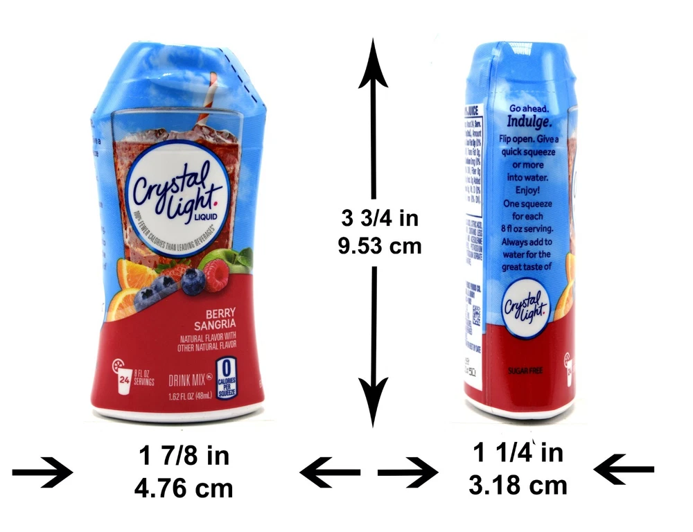 This Listing is for a 2-Pack Crystal Light or Mio Liquid Drink Mix 1.62 Fluid Ounce. Multi-Purchase Discount: Buy More and Save Up To 35%. The Best By Date For Each Flavor is: Crystal Light Berry Sangria: Out of Stock Crystal Light Blackberry Lemonade: November 2nd 2024 Crystal Light Blueberry Raspberry: February 10th 2025 Crystal Light Cherry Splash With Caffeine: Out of Stock Crystal Light Mango Passion Fruit: Out of Stock Crystal Light Strawberry Lemonade: February 15th 2025 Crystal Light Strawberry Pineapple Refresh With Caffeine: March 29th 2025 Crystal Light Tropical Coconut: January 1st 2025 Crystal Light Tropical Paradise Punch With Caffeine: Out of Stock Mio Energy Acai Berry Storm: October 20th 2024 Mio Energy Black Cherry: January 24th 2025 Mio Energy Green Thunder: November 24th 2024 Mio Energy Strawberry Pineapple : April 6th 2025 Mio Energy Tropical Fusion: November 26th 2024 Mio Energy Wicked Blue Citrus: January 17th 2025 Mio Sport Artic Grape: December 14th 2024 Mio Hydrate Berry Blast: March 4th 20th 2025 Mio Hydrate Lemon Lime: April 14th 2025 Mio Berry Pomegranate: February 9th 2025 Mio Blueberry Lemonade: March 16th 2025 Mio Cherry Blackberry: March 31st 2025 Mio Cranberry Raspberry: November 8th 2024 Mio Fruit Punch: February 4th 2025 Mio Lemonade: November 1st 2024 Mio Mango Peach: November 24th 2024 Mio Orange Tangerine: March 13th 2025 Mio Strawberry Kiwi: June 17th 2024 Mio Strawberry Watermelon: April 24th 2025 Mio Sweet Tea: March 1st 2025 Mio Watermelon Lemonade: January 22nd 2025 Additional Product Information: Crystal Light and Mio Liquid Drink Mixes blend easily with water, have zero calories and zero grams of sugar. The compact 1.62 fluid ounce squeeze bottle fits easily in your bag or pocket so you can enjoy the great taste of Crystal Light and Mio anytime, anywhere. All the flavor and no calories, just the way you like it. Usage Directions: To prepare, simply squeeze a few drops (1/2 teaspoon equivalent or 2.46 ml) into water and stir. Questions and Comments: Questions and comments are welcome and can be sent to me via eBay email.