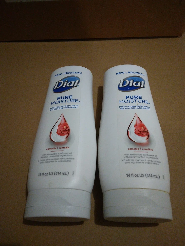 2 Pack - Dial Pure Moisture Body Wash Camellia 14 FL Oz Each READ Description. BOTTLES DO HAVE CRACKED LIDS PLEASE LOOK AT PICTURES THANKS