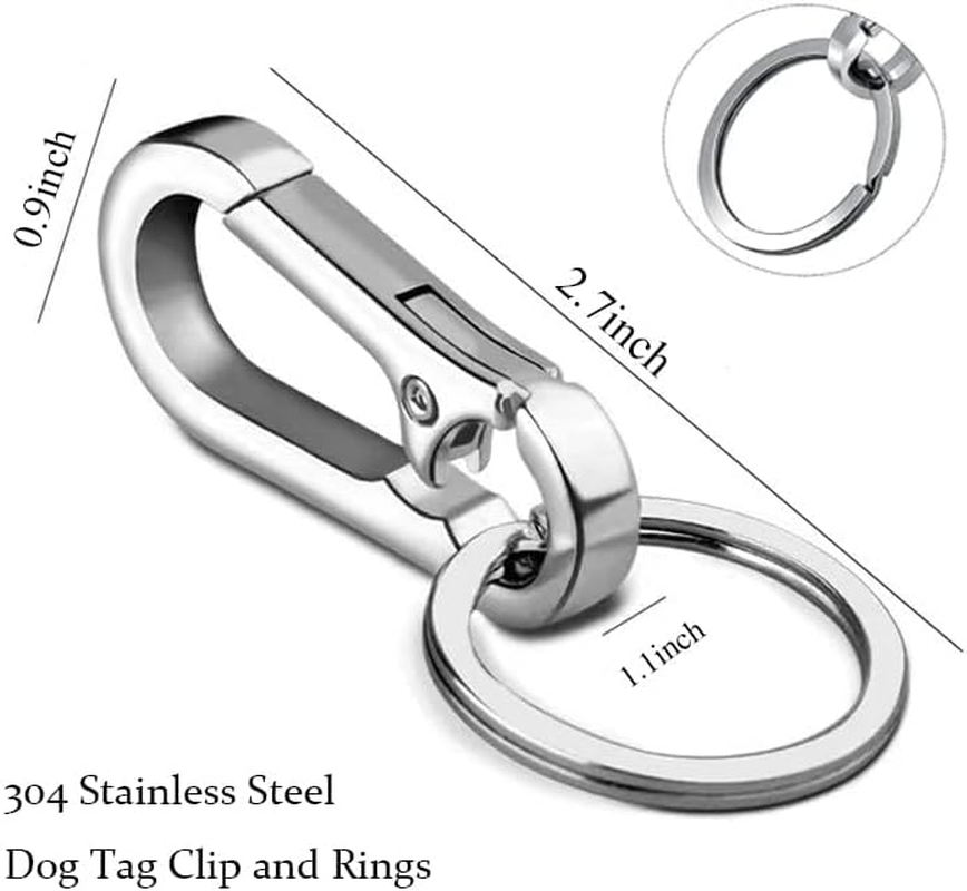 2 Pack Stainless Steel Dog Tag Clips with Rings for Pet ID Holder
