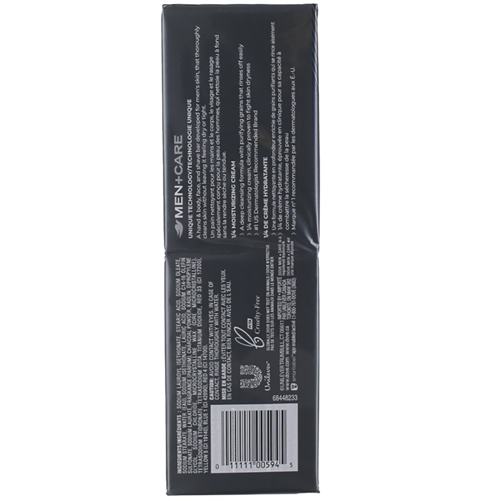 Product Description Dove Men+Care Elements Charcoal and Clay Bar is a men's bar soap that both provides a deep, purifying clean for men's skin, but also leaves you feeling energized, refreshed, and renewed. Specifically developed for men's skin, this men's bar soap has a unique formulation inspired by natural ingredients like charcoal and clay, and delivers a boost of freshness with every use. Developed with Dove ¼ moisturizing cream this bar soap was made specifically for men's skin by the #1 Dermatologist Recommended men's skin care brand. This Dove Men bar washes away dirt and oil and thoroughly cleanses without irritating skin or making skin feel tight or dry unlike many ordinary men's bar soaps. Its mild formula is also gentle enough to use on your face. Discover the power of Dove Men+Care Elements with Dove Men+Care Charcoal and Clay Bar. Using straightforward ingredients like charcoal, known to act like a natural purifier, and clay, known to draw out dirt and oil from skin, this bar leaves you feeling clean and refreshed for the day ahead. Pair with other products from the Dove Men Elements range such as the charcoal shampoo or minerals and sage antiperspirants and deodorants for a nature-inspired, refreshing men's grooming routine. For best use, wet your Dove Men+Care bar fully in the shower and rub it in your hands to produce a light lather foam. Work it over your skin and rinse thoroughly Dove Men+Care Elements Body and Face Bar Charcoal + Clay 3.75 oz, 6 Bar - Dove Men+Care Body and Face bath soap bar is designed to give men's skin a head to toe clean - Formulated with charcoal and clay, this body soap and face cleanser gives you a deep clean every time you use it - Made with Dove 1/4 moisturizing cream, this bath soap for men hydrates skin as it cleans to help with dryness - This moisturizing mens soap is infused with a clean scent that keeps you feeling fresh in the shower and beyond - Gentle enough to use on body and face, this mens soap cuts down on the number of products you need for a fantastic, head to toe clean Ingredients Sodium Lauroyl Isethionate, Stearic Acid, Sodium Oleate, Sodium Stearate, Water (Aqua), Sodium Isethionate, Lauric Acid, Sodium C14-16 Olefin Sulfonate, Sodium Laurate, Fragrance (Parfum), Charcoal Powder, Kaolin, Dipropylene Glycol, Sodium Chloride, Microcrystalline Wax, Tetrasodium Edta, Tetrasodium Etidronate, Titanium Dioxide (Ci 77891), Red 33 (Ci 17200), Yellow 5 (Ci 19140), Blue 1 (Ci 42090), Red 4 (Ci 14700) Product Description Dove Men+Care Elements Charcoal and Clay Bar is a men's bar soap that both provides a deep, purifying clean for men's skin, but also leaves you feeling energized, refreshed, and renewed. Specifically developed for men's skin, this men's bar soap has a unique formulation inspired by natural ingredients like charcoal and clay, and delivers a boost of freshness with every use. Developed with Dove ¬º moisturizing cream this bar soap was made specifically for men's skin by the #1 Dermatologist Recommended men's skin care brand. This Dove Men bar washes away dirt and oil and thoroughly cleanses without irritating skin or making skin feel tight or dry unlike many ordinary men's bar soaps. Its mild formula is also gentle enough to use on your face. Discover the power of Dove Men+Care Elements with Dove Men+Care Charcoal and Clay Bar. Using straightforward ingredients like charcoal, known to act like a natural purifier, and clay, known to draw out dirt and oil from skin, this bar leaves you feeling clean and refreshed for the day ahead. Pair with other products from the Dove Men Elements range such as the charcoal shampoo or minerals and sage antiperspirants and deodorants for a nature-inspired, refreshing men's grooming routine. For best use, wet your Dove Men+Care bar fully in the shower and rub it in your hands to produce a light lather foam. Work it over your skin and rinse thoroughly Dove Men+Care Elements Body and Face Bar Charcoal + Clay 3.75 oz, 6 Bar - Dove Men+Care Body and Face bath soap bar is designed to give men's skin a head to toe clean - Formulated with charcoal and clay, this body soap and face cleanser gives you a deep clean every time you use it - Made with Dove 1/4 moisturizing cream, this bath soap for men hydrates skin as it cleans to help with dryness - This moisturizing mens soap is infused with a clean scent that keeps you feeling fresh in the shower and beyond - Gentle enough to use on body and face, this mens soap cuts down on the number of products you need for a fantastic, head to toe clean Ingredients Sodium Lauroyl Isethionate, Stearic Acid, Sodium Oleate, Sodium Stearate, Water (Aqua), Sodium Isethionate, Lauric Acid, Sodium C14-16 Olefin Sulfonate, Sodium Laurate, Fragrance (Parfum), Charcoal Powder, Kaolin, Dipropylene Glycol, Sodium Chloride, Microcrystalline Wax, Tetrasodium Edta, Tetrasodium Etidronate, Titanium Dioxide (Ci 77891), Red 33 (Ci 17200), Yellow 5 (Ci 19140), Blue 1 (Ci 42090), Red 4 (Ci 14700) Suggested Use For best results, use daily Warnings Avoid contact with eyes. If contact occurs rinse thoroughly with water Disclaimer The product descriptions and instructions provided by vitabox.com are for informational purposes only and are qualified in their entirety by the information available from manufacturers of the products. You should carefully read all product packaging, and contact the manufacturer with any questions before using a product. While we endeavor to ensure that product descriptions are current, manufacturers sometimes change their products. We are not liable for inaccuracies or misstatements about products. We do not provide medical advice or recommendations. You should not use the information provided by vitabox.com for diagnosing or treating a health problem or disease. If you have or suspect that you have a medical problem, immediately contact your health care provider. Information and statements regarding dietary supplements have not been evaluated by the Fo