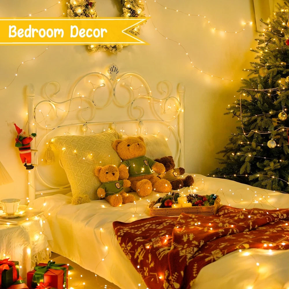 Store New Arrivals Add to Favorite View Feedback Contact Fast deliveries to the customer's home Quality customer service John Make the customers happy! 2 Pack Fairy Lights Battery Operated with Remote, Total 400 LED 132Ft Battery Powered Christmas String Lights, Twinkle Fairy Lights for Christmas Tree Bedroom Indoor Outdoor Decor, Warm White Description 2-PACK DECORATIVE CHRISTMAS FAIRY LIGHTS: 200 LED bulbs on 66ft high-quality copper wire, with a steady 360-degree viewing angle. In the dark, the wire fades to invisible, leaving the bright lights, and creating a classic, romantic, warm atmosphere. Therefore, the fairy lights are ideal for indoor-outdoor decorations, such as Mother's Day gift decor, Christmas trees, Xmas House, bedrooms, dates, centerpieces, fireplaces, porches, patios, gazebos, gardens, restaurants, etc. FLEXIBLE COPPER WIRE TWINKLE LIGHTS: The copper wire is flexible, you can bend it to any shape or wrap it on anything, such as a Christmas garland, tree, wedding bouquet, etc. You can enjoy the fun of DIY and decorating the house with your family on vacation. NOTE: Please gently untie or twist when using it, and DON'T bend it repeatedly, to avoid the twinkle light from breaking or not working. If not in use, it is recommended to coil the wire with a cylindrical object, to use it next time. PORTABLE WATERPROOF STRING LIGHTS WITH REEL: IP44 Outdoor waterproof string lights are powered by 3AA batteries (Not included). The battery-operated fairy string lights come packaged on a reel, so no tangle worries. The fairy string light is paired with a battery box, with no restrictions on sockets and venue. The battery box has a sealing ring, so it has good waterproof performance, and no worry about rain and snow splashing in. The portable and waterproof fairy light allows you to place it anywhere. BATTERY OPERATED CHRISTMAS LIGHTS WITH REMOTE: The remote control is up to 32.8 unobstructed feet away from the battery box of the Christmas lights; advanced IR technology and a smart chip remote control design with a greater launch angle, a stronger signal; It can respond quickly whether it is turning on/off, set a timer, or switching modes and dimming. The remote control is ergonomic and comfortable to touch. When using, just aim the remote control in the direction of the battery box. CUSTOMER SERVICE: What is more trustworthy is that we provide a one-year after-sales warranty. If you have any questions about the battery-operated Christmas fairy lights and service, please contact us. Product Description Hi! Suggestion: When you receive the product, it is recommended that you install the battery first after unpacking to test the light effect. If it doesn't work, you can ask us for help. It is recommended that you do not completely untie the fairy light at the beginning. Because the light is 66ft long, completely untied and pulling it forcibly easily causes the fairy light to become tangled or broken. Do not bend the same point repeatedly when using. When the fairy light is not in use, it is recommended that you use a cylindrical object to coil the wire lights and take out the battery from the battery box for the next use. Tips: fairy light is a single color, and it cannot change color. Multicolor color is four-color: red, yellow, blue, and green. It cannot be turned into pink, purple and other colors like RGB. Remote control: When in use, point the remote control to the unobstructed battery box. If the remote control does not work, try to replace the remote control battery (CR2025). The battery box uses 3*AA batteries. Please do not mix batteries of different brands; in addition, do not use new and old batteries at the same time. The battery box with a rubber ring, which can enhance the waterproof performance of the battery box. so please be careful not to remove the rubber ring in the battery box, otherwise, the waterproof performance of the battery box will be greatly reduced. Come to decorate your daily Life! Fairy lights for your gift decortain Mother's Day Flower Valentine's Day Flower Fairy lights for your Christmas Tree Christmas tree Fairy lights for your photo a decoration for photos Fairy lights for your summer decor Patio garden Flexible Fairy Lights The copper wire of the light string is sturdy and flexible, you could easily adjust and twist it in the desired position and the shape you like. The twinkle light is relatively soft, you do not need much effort to twist this light wire. Warm White Christmas Fairy Lights Specification Bulbs: 200 LED Light Color: Warm White Wire Material: Copper Copper Wire Color: Copper Space between LEDs: 10 cm/3.94 inch Copper Length: 2000cm/ 65.6ft Lead Wire Length: 50cm/ 1.64ft Total Length: 2050cm / 67.2ft Remote Control Timer: Can be turned on for 6 hours and off 18 hours automatically cycle. 8 Modes: Combination, in wave, sequential, slo glo, chasing/flash, slow fade, twinkle/flash, and steady on. Meet your different needs. 4 level brightness adjustment: press the "+" and"-" to adjust the brightness. Waterproof Bttery Box Waterproof Rubber: The rubber ring can enhance the water resistance of the battery box, Type of battery: 3 * AA battery (Not included) Button: There is a button on the battery box, which can control 8 functions and switches of fairy lights. IP44 Waterproof Pixie Lights The warm white pixie lights are IP44 waterproof, can prevent rain and snow, is very suitable for indoor/outdoor decoration, creating a warm and comfortable atmosphere for you. Safe to Use Using insulated wire design, so the fairy lights work at a low voltage of 4.5V. The fairy lights will not overheat. So you won't worry about your children touch the fairy lights accidentally. The fairy lights light up your home and make life better! warm Fairy lights light up your wedding Mini Fairy lights light up your house sign Firyfly twinkle lights light up your patio Warm White LED fairy Lights for Indoor/Outdoor Decorations! Light Source Type LED Style Classic Number